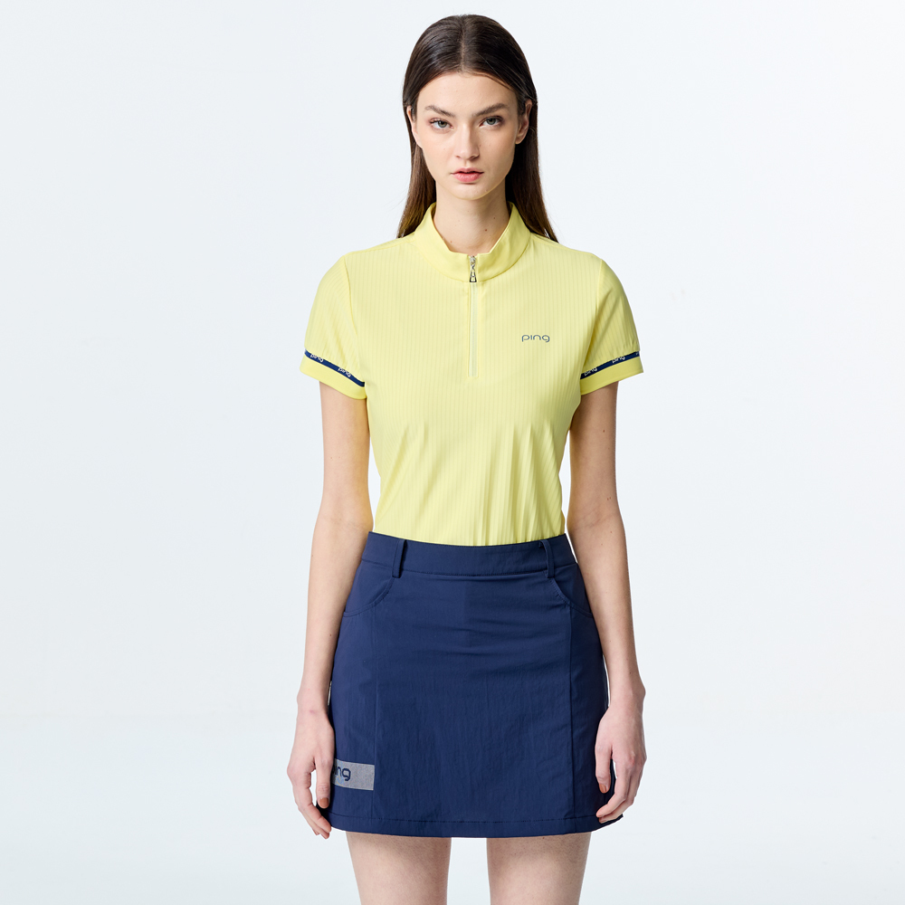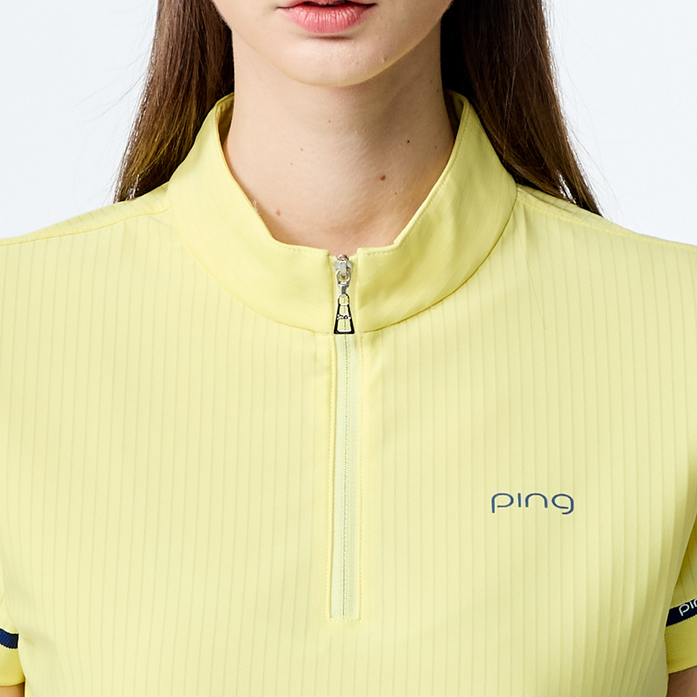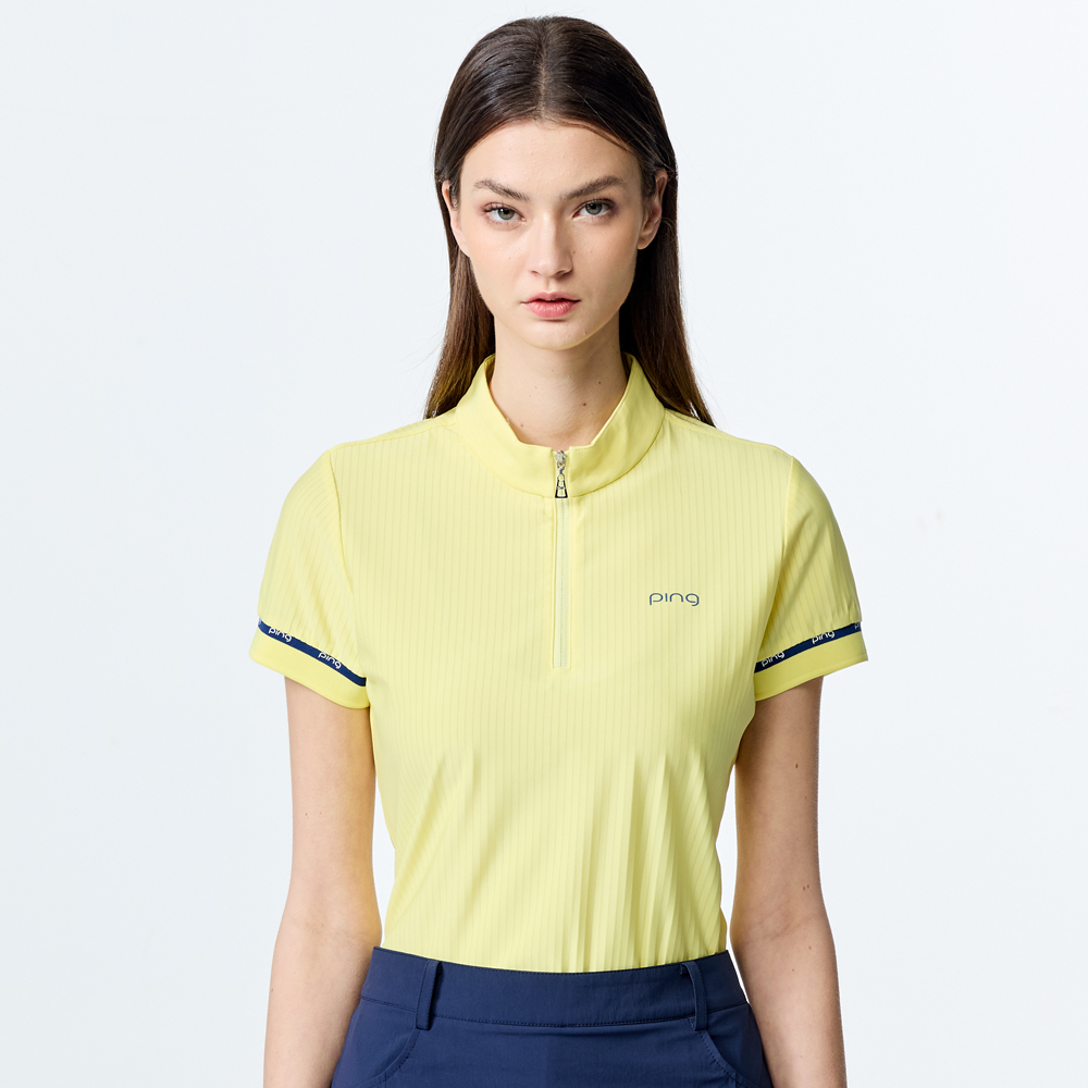 【PING】女款吸濕排汗涼感短袖立領上衣-黃 / RA25119-33