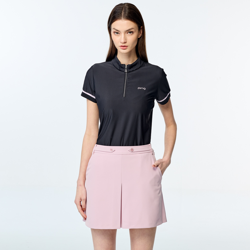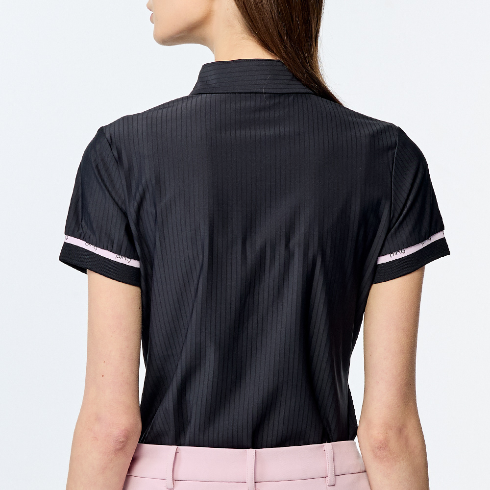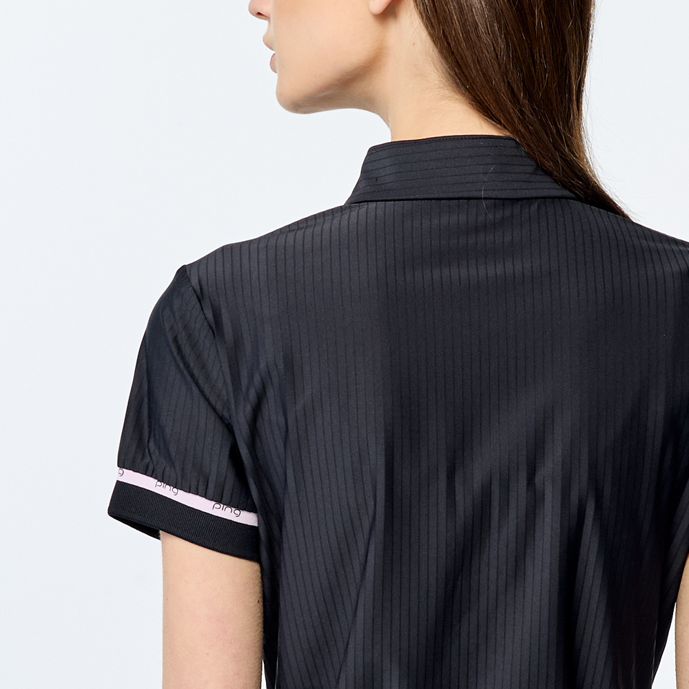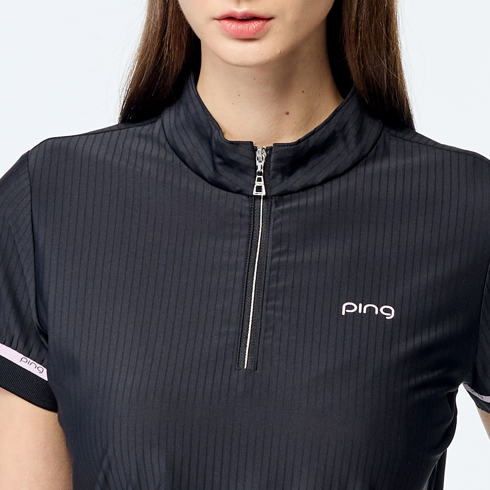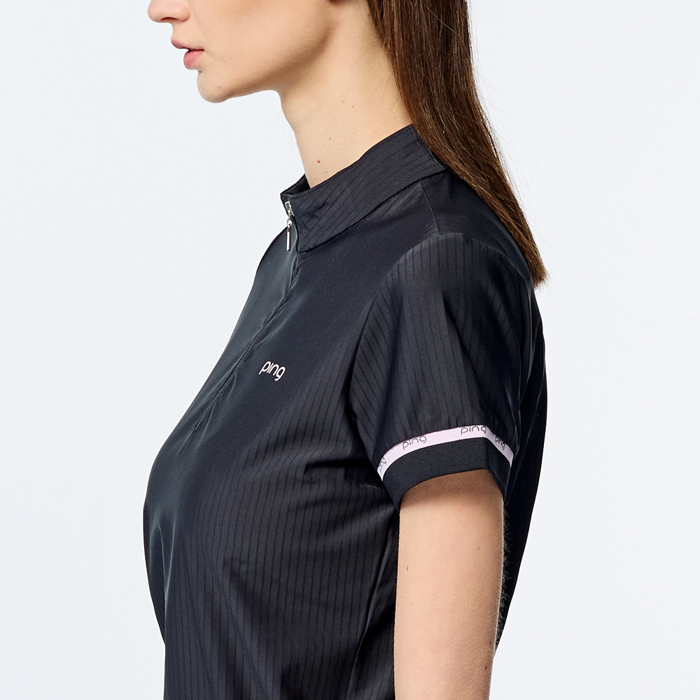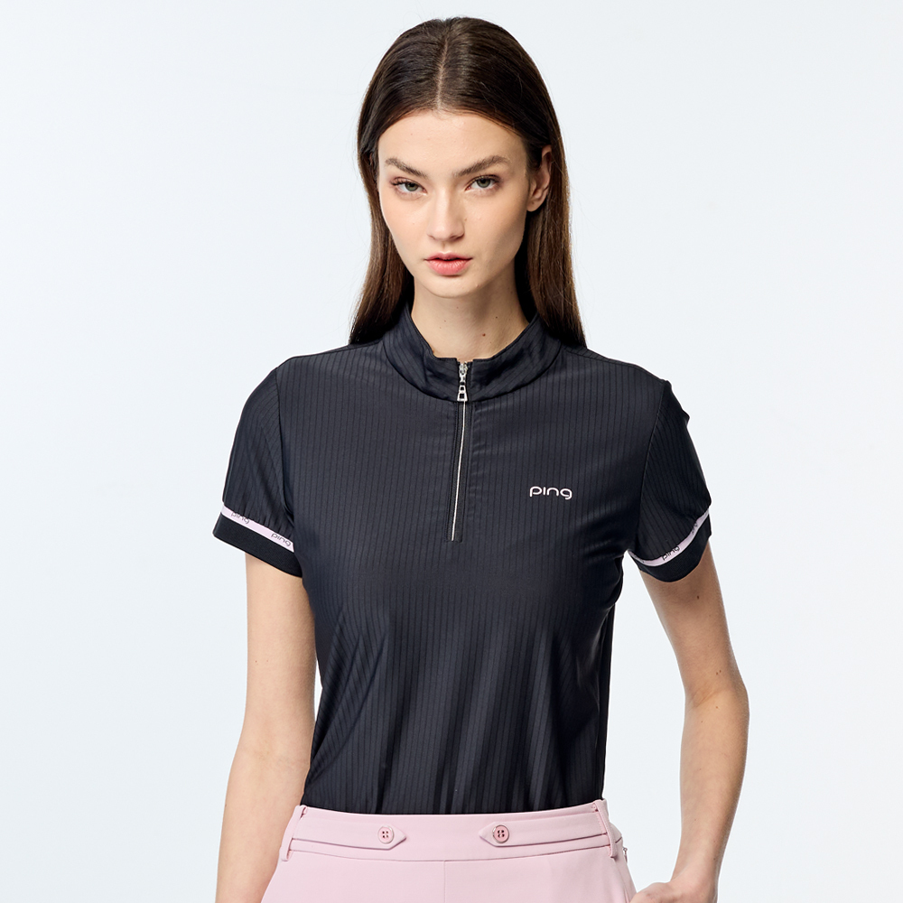 【PING】女款吸濕排汗涼感短袖立領上衣-黑 / RA25119-88