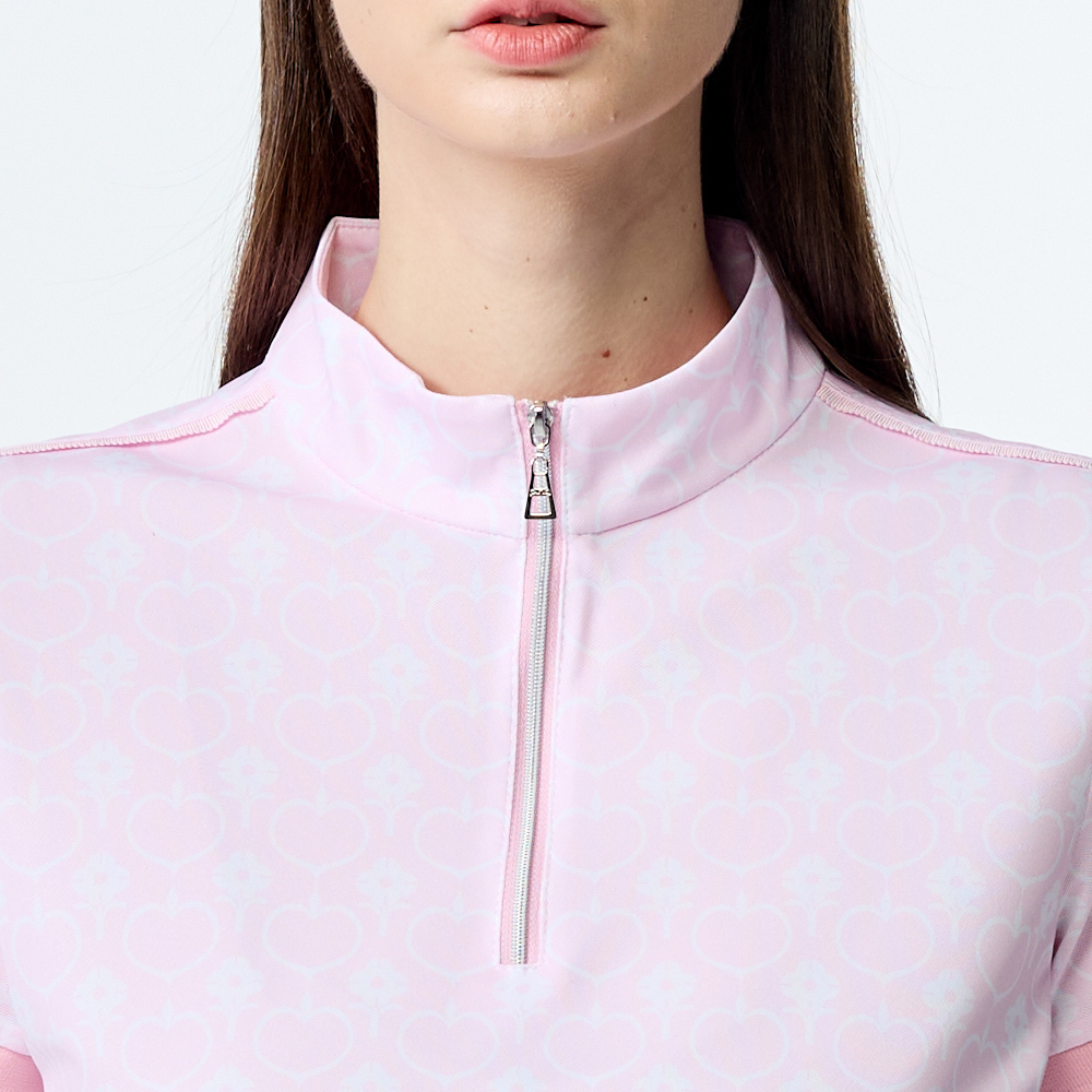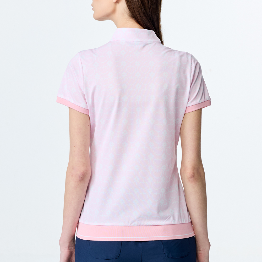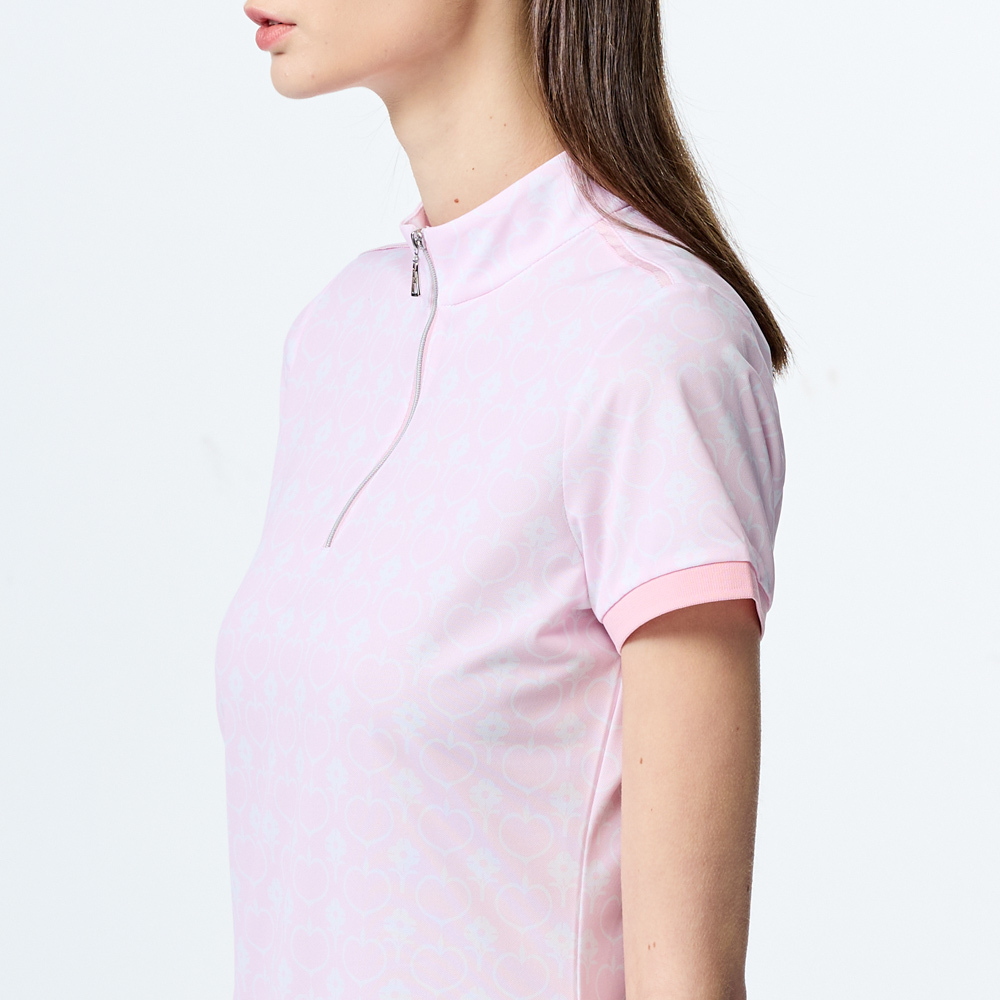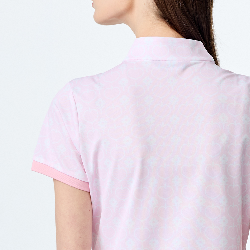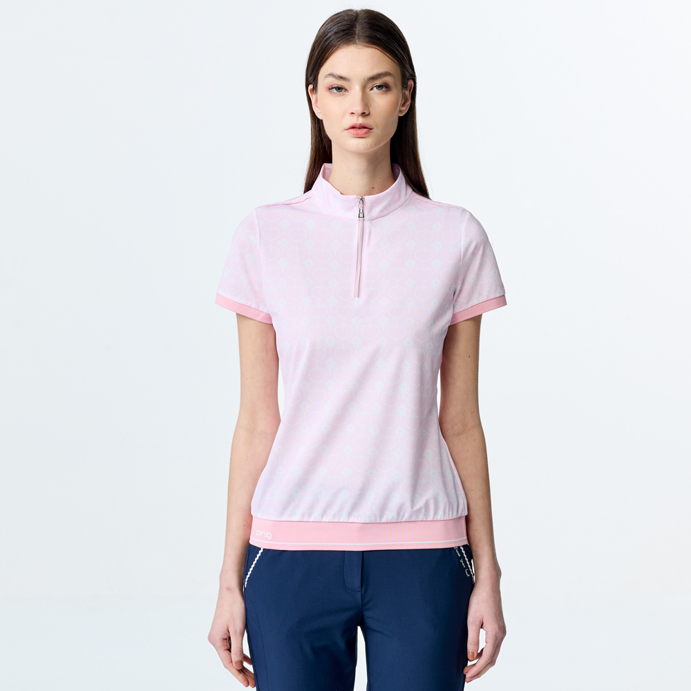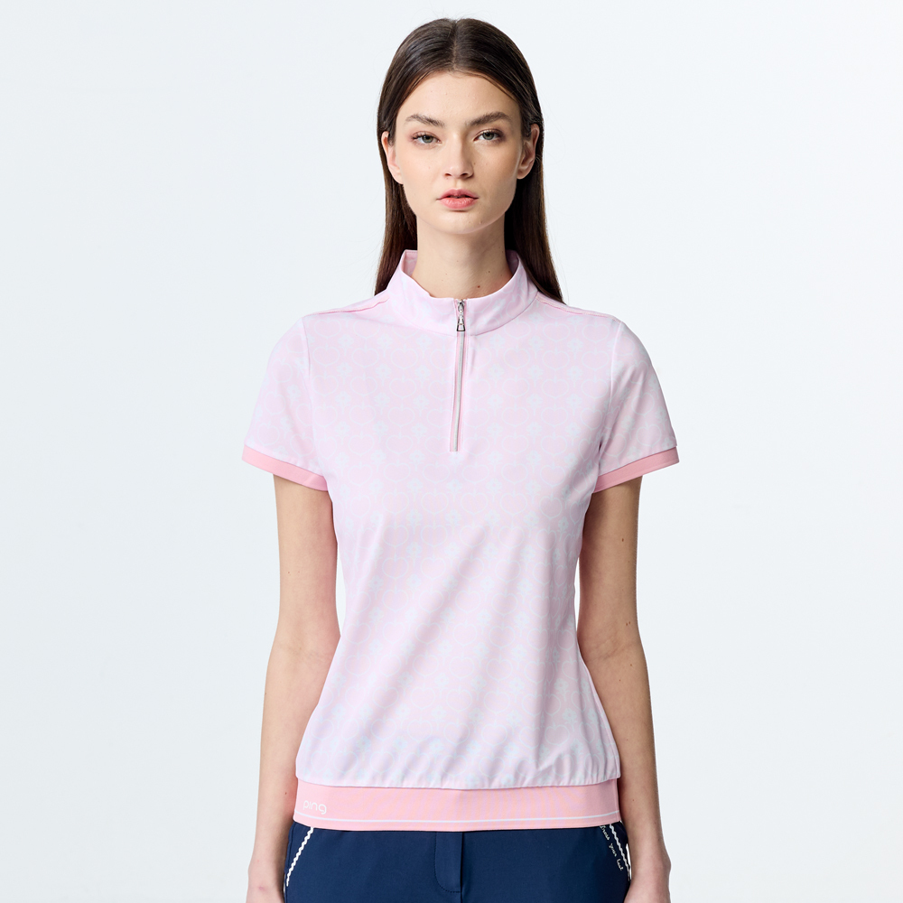 【PING】女款愛心花抗UV短袖立領上衣-粉 / RA25120-15