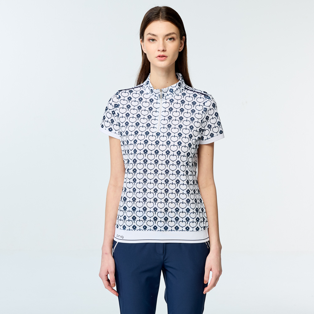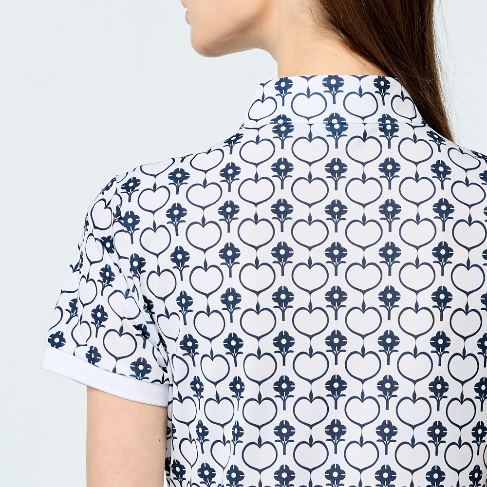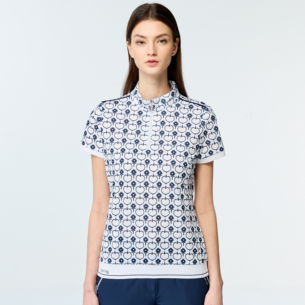 【PING】女款愛心花抗UV短袖立領上衣-深藍 / RA25120-58