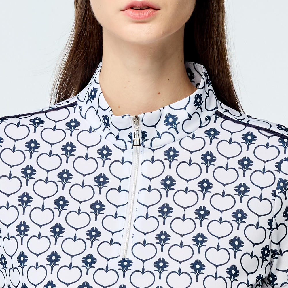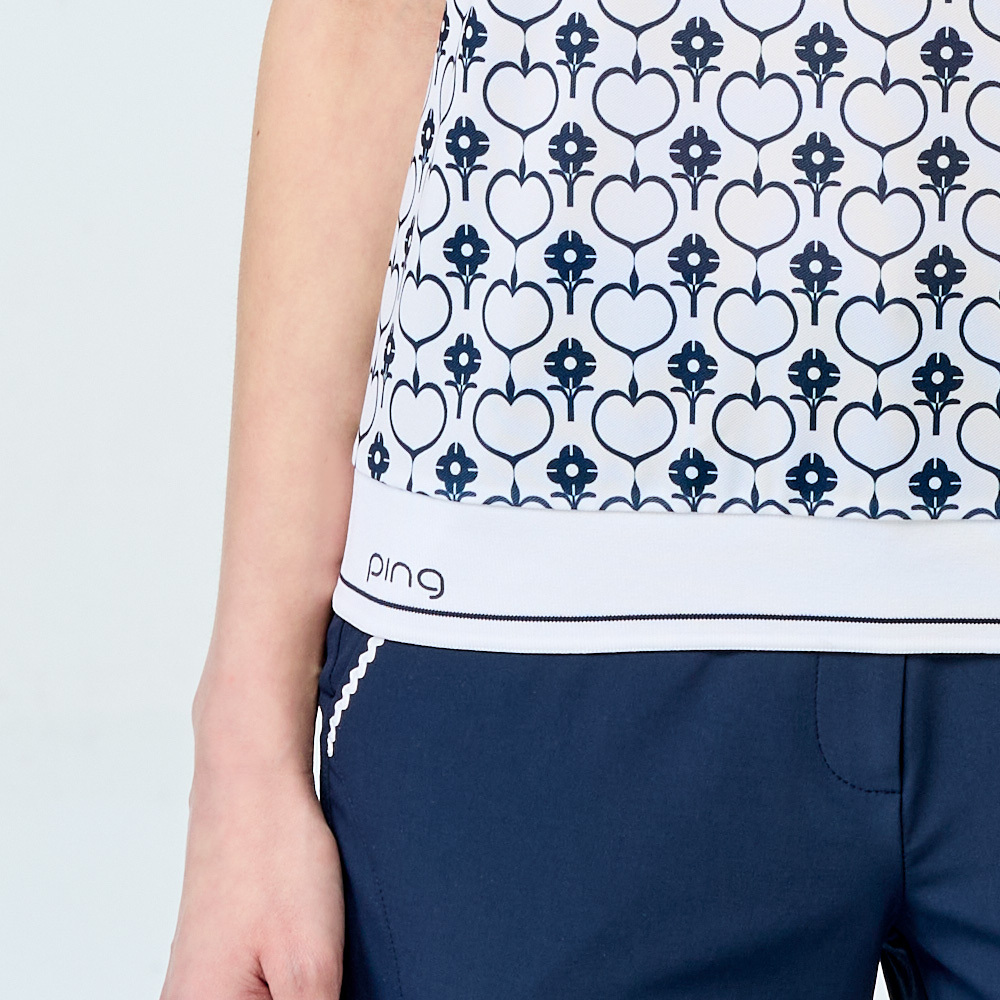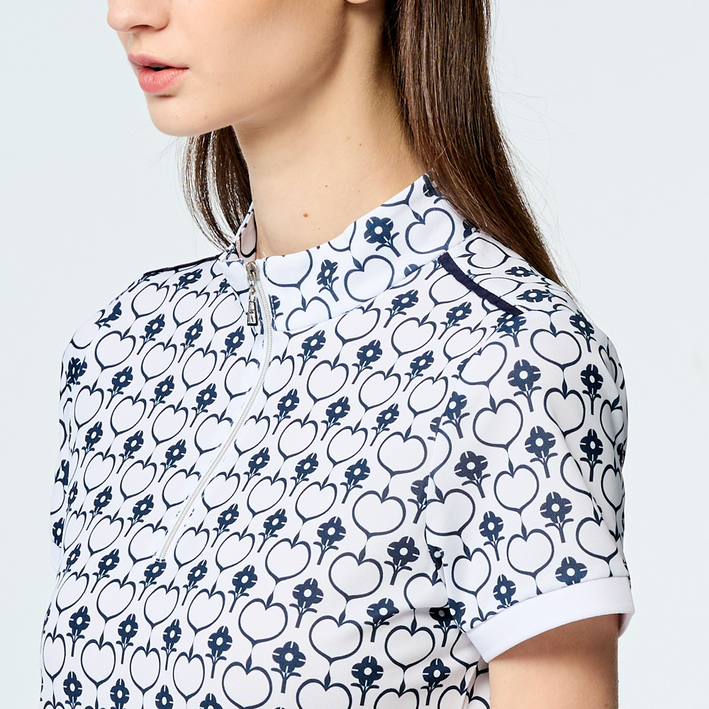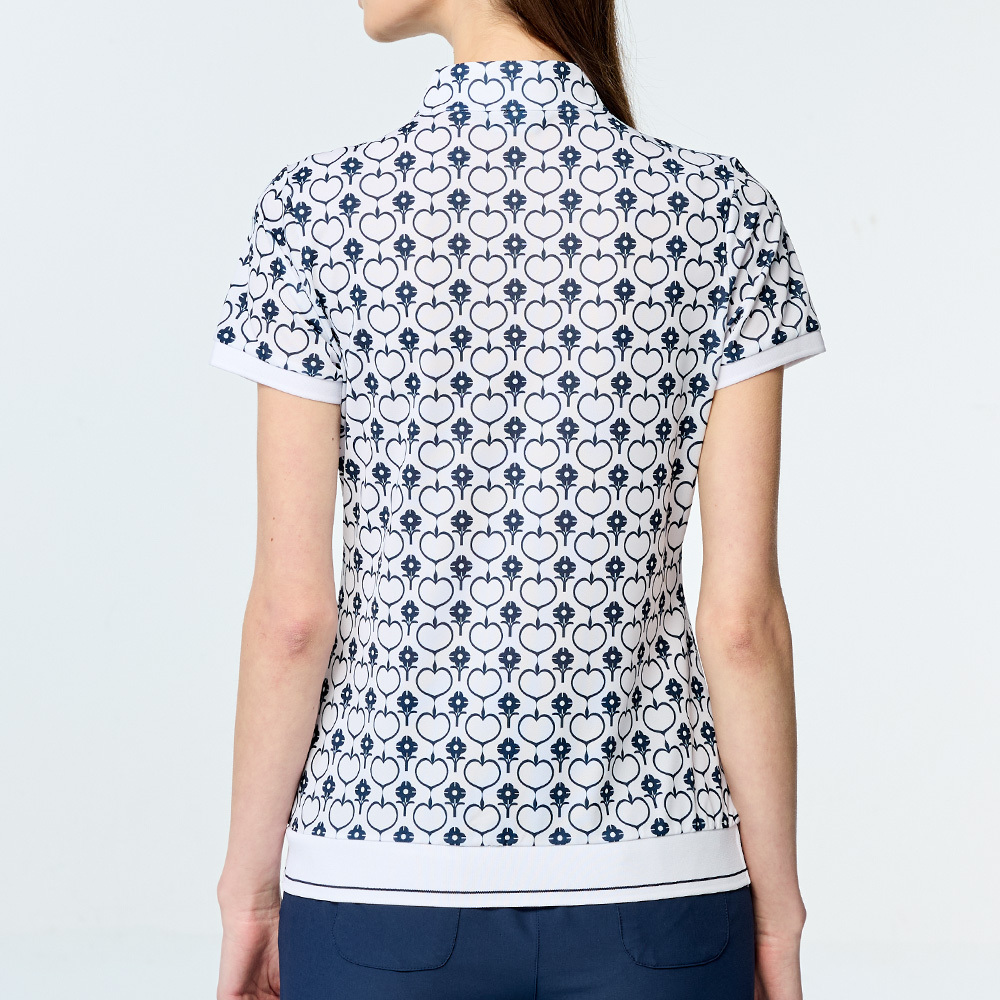 【PING】女款愛心花抗UV短袖立領上衣-深藍 / RA25120-58