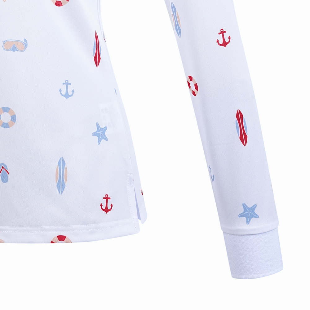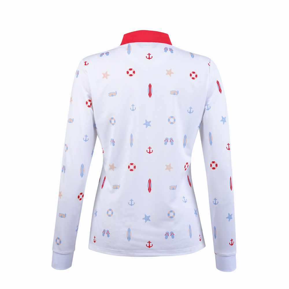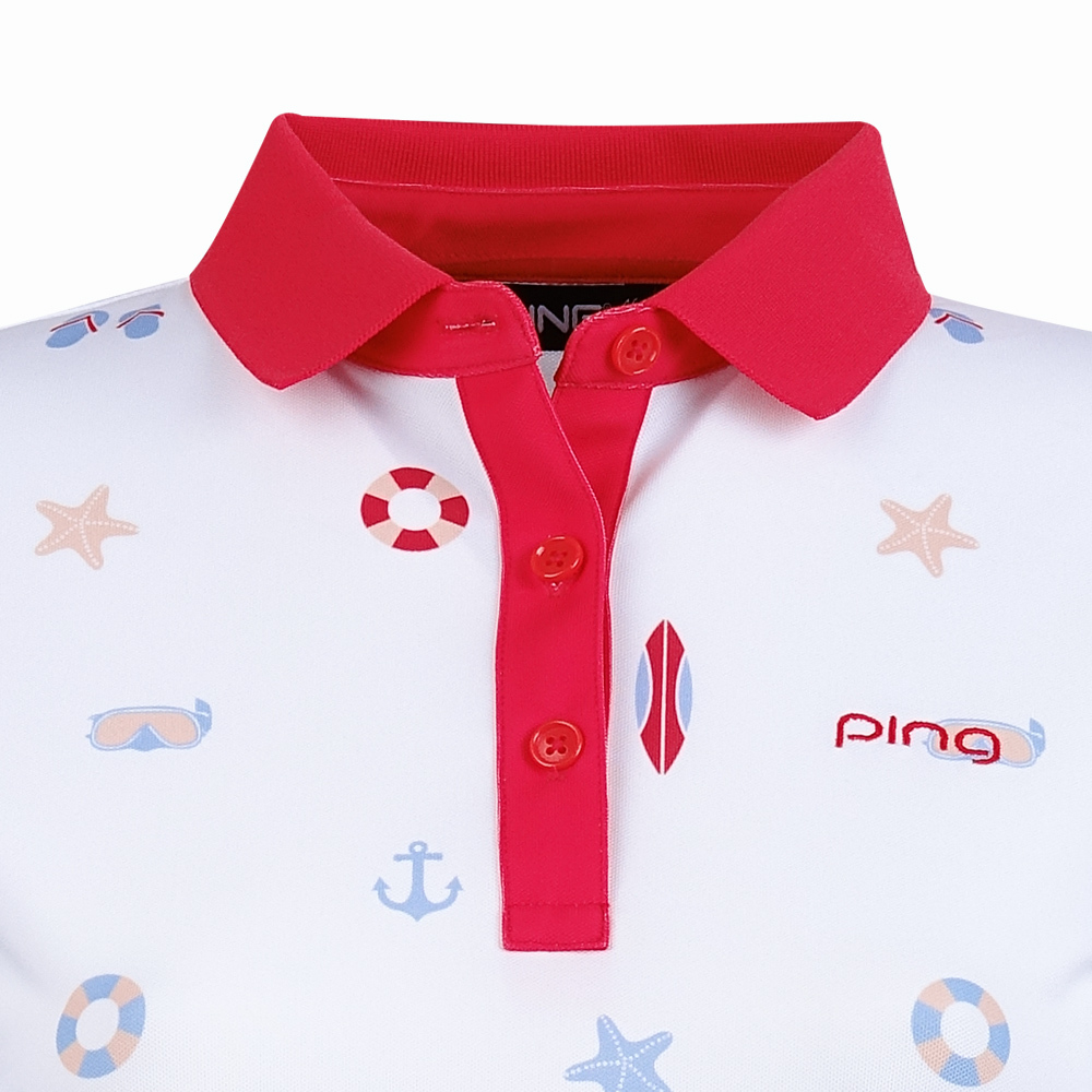 【PING】女款度假風吸濕排汗抗UV薄長袖POLO衫-紅 / RA25135-18