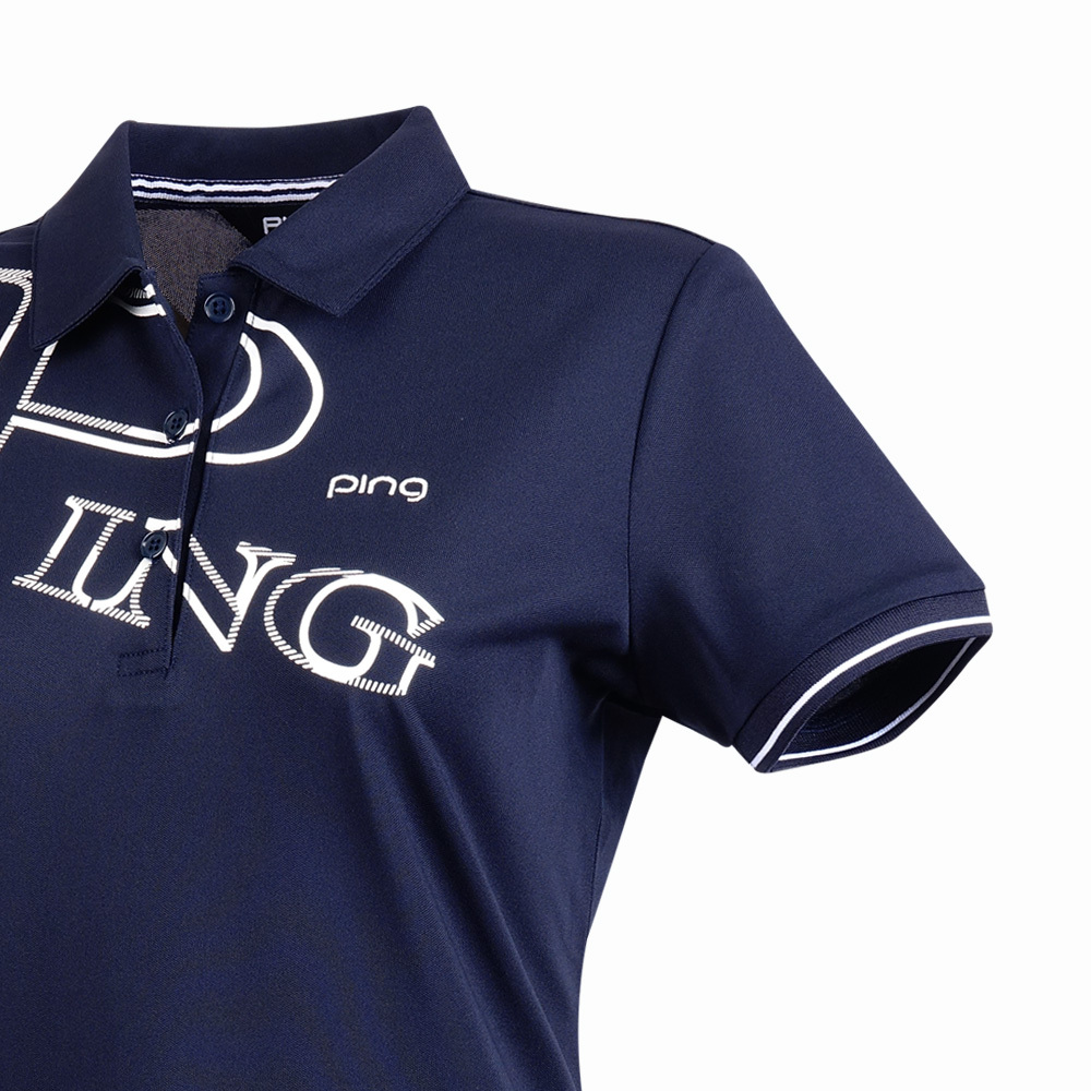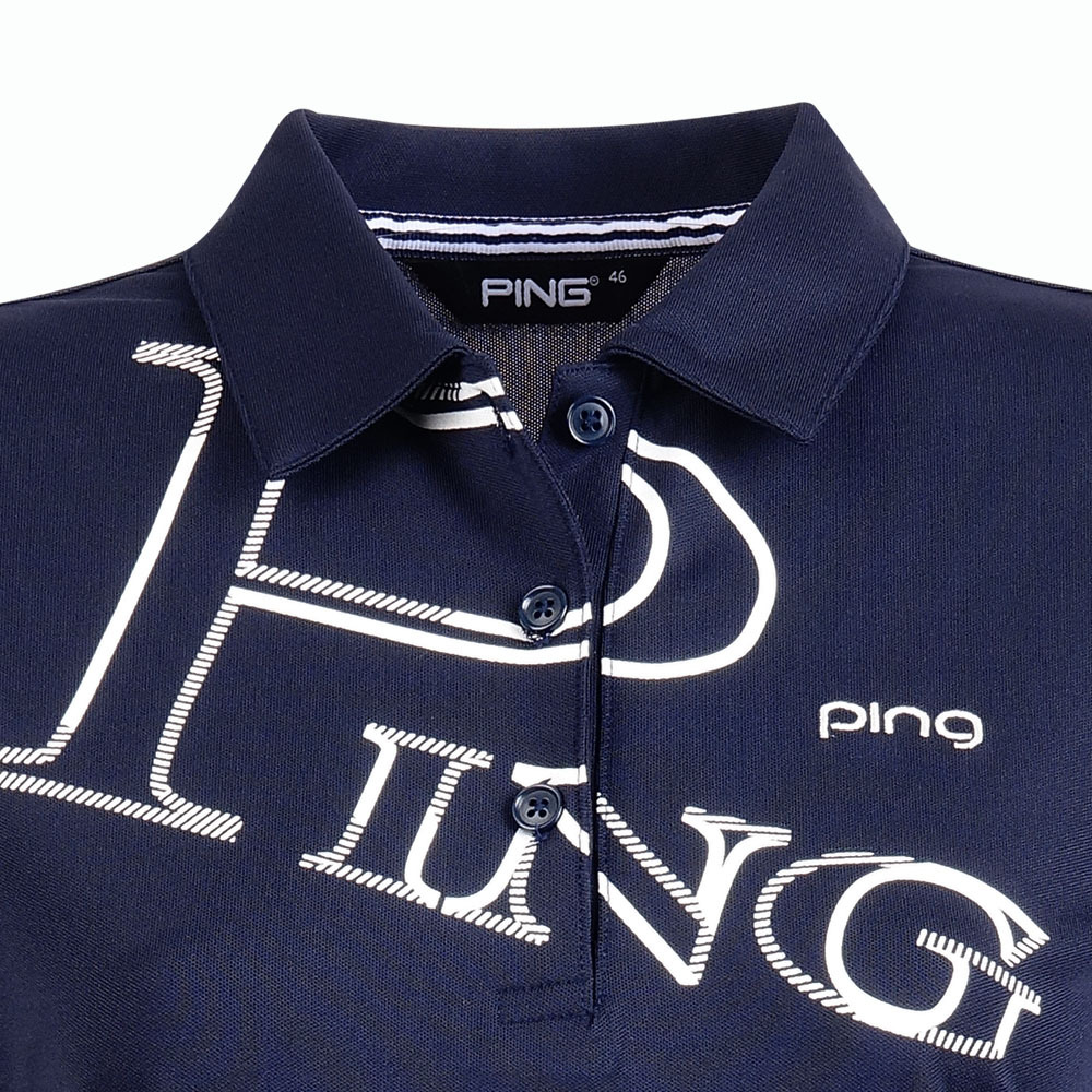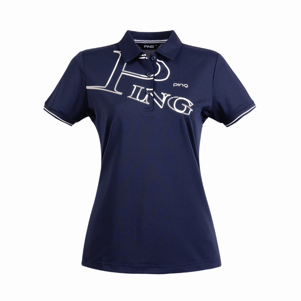 【PING】女款網眼吸濕排汗抗UV高爾夫短袖POLO衫-深藍 / RA25190-58
