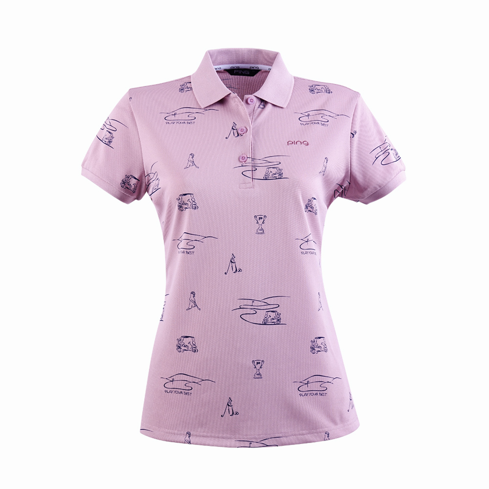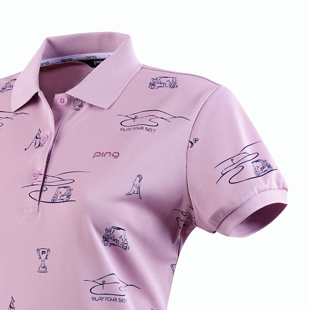 【PING】女款吸濕排汗抗UV高爾夫短袖POLO衫-粉 / RA25191-15