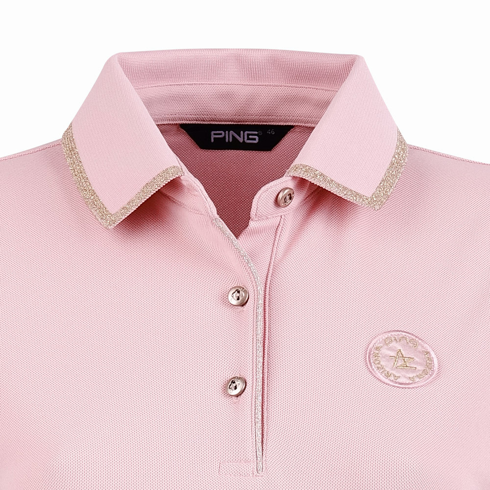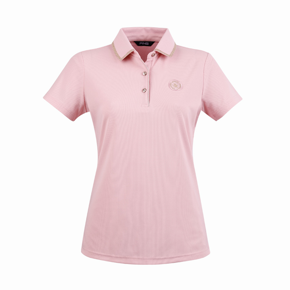 【PING】女款亮蔥領吸濕排汗抗UV短袖POLO衫-粉紅 / RA25192-13