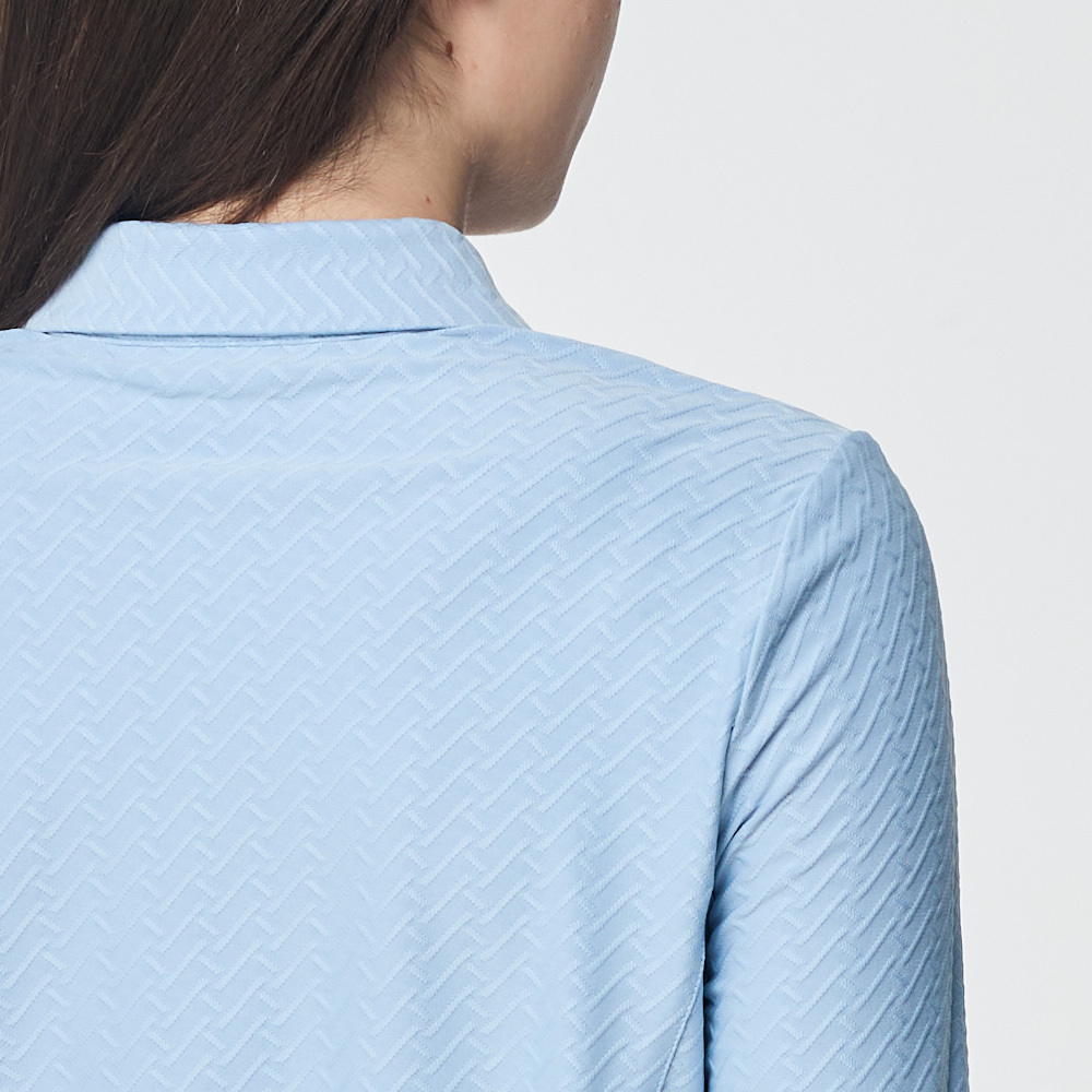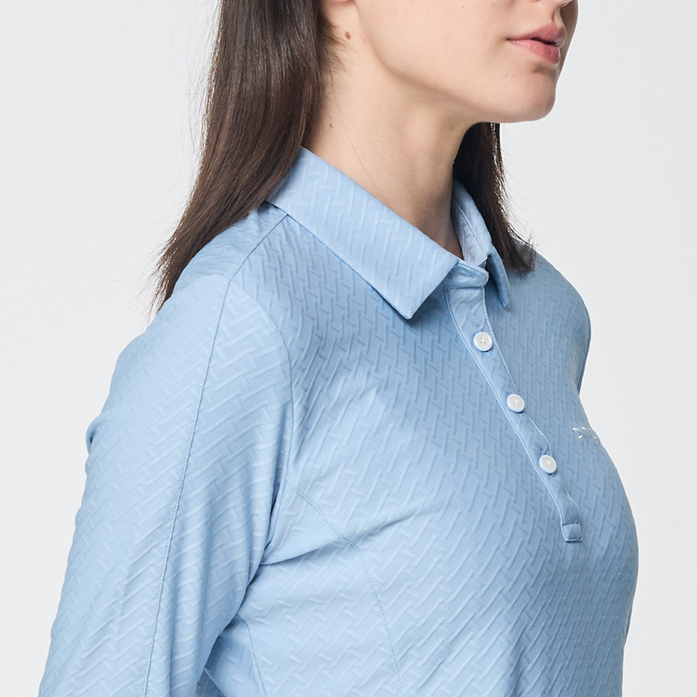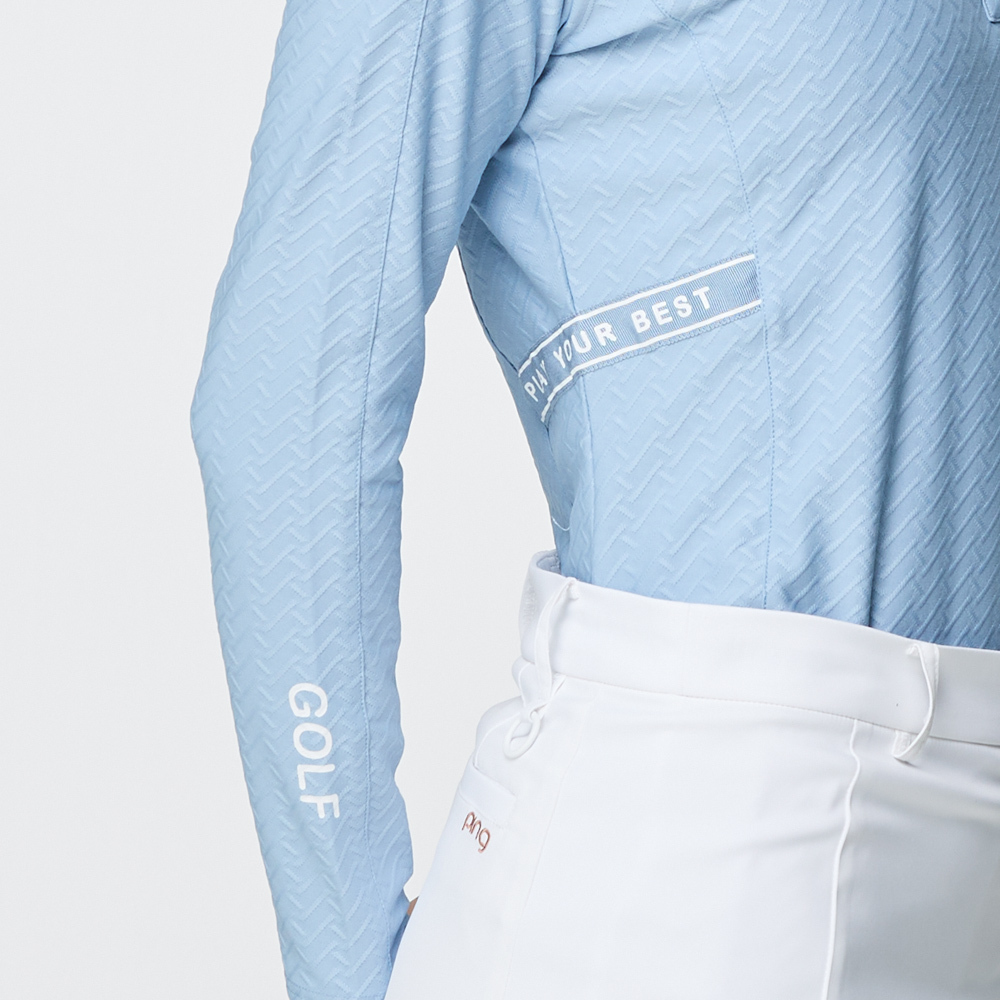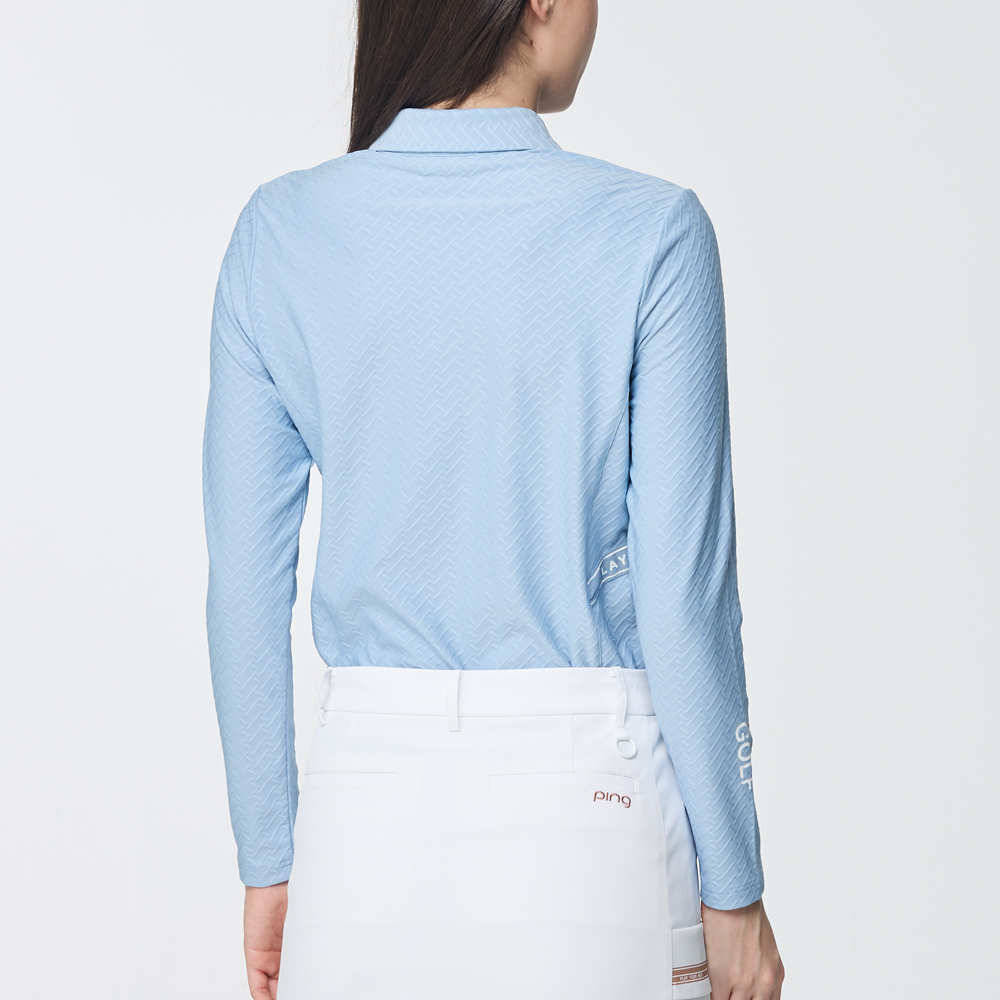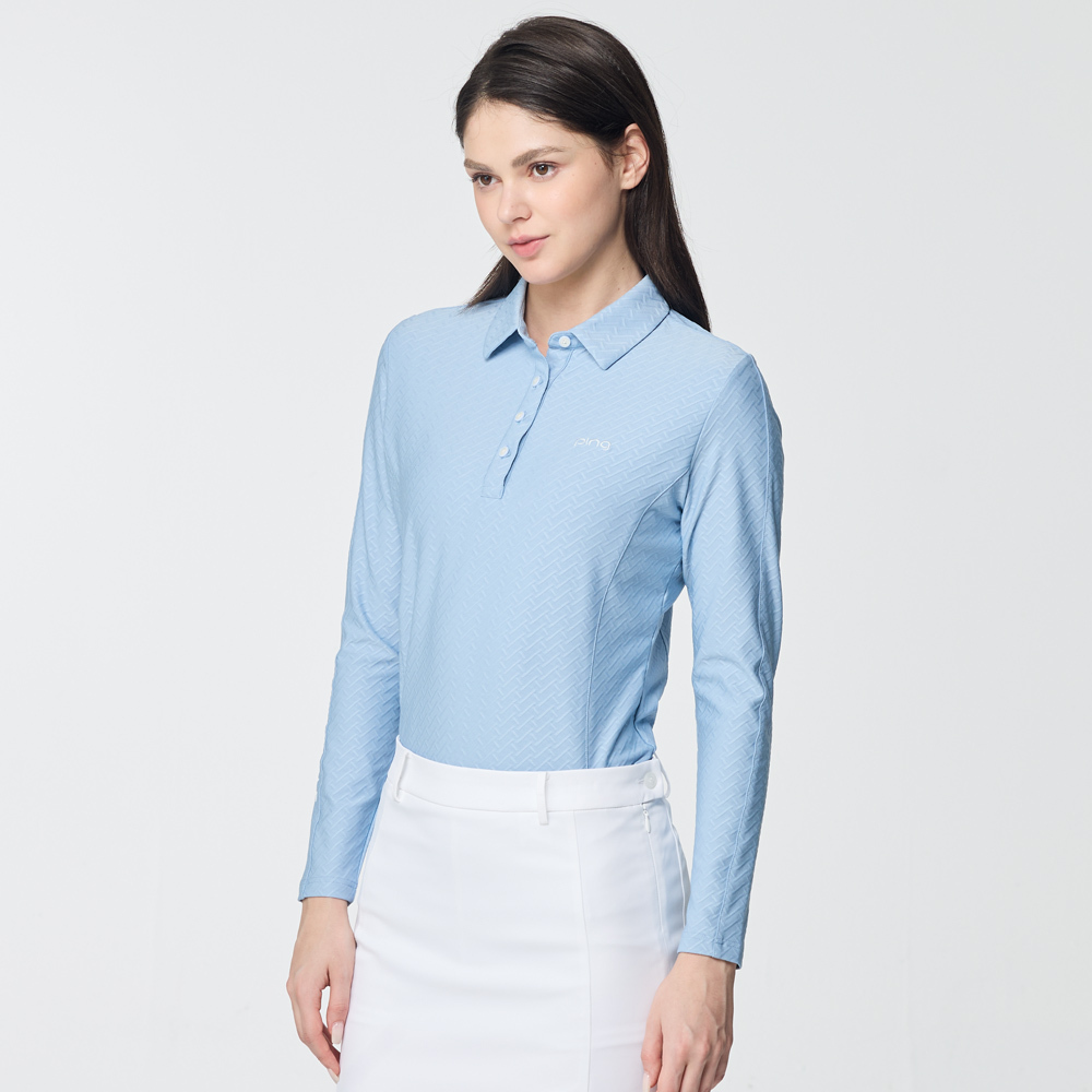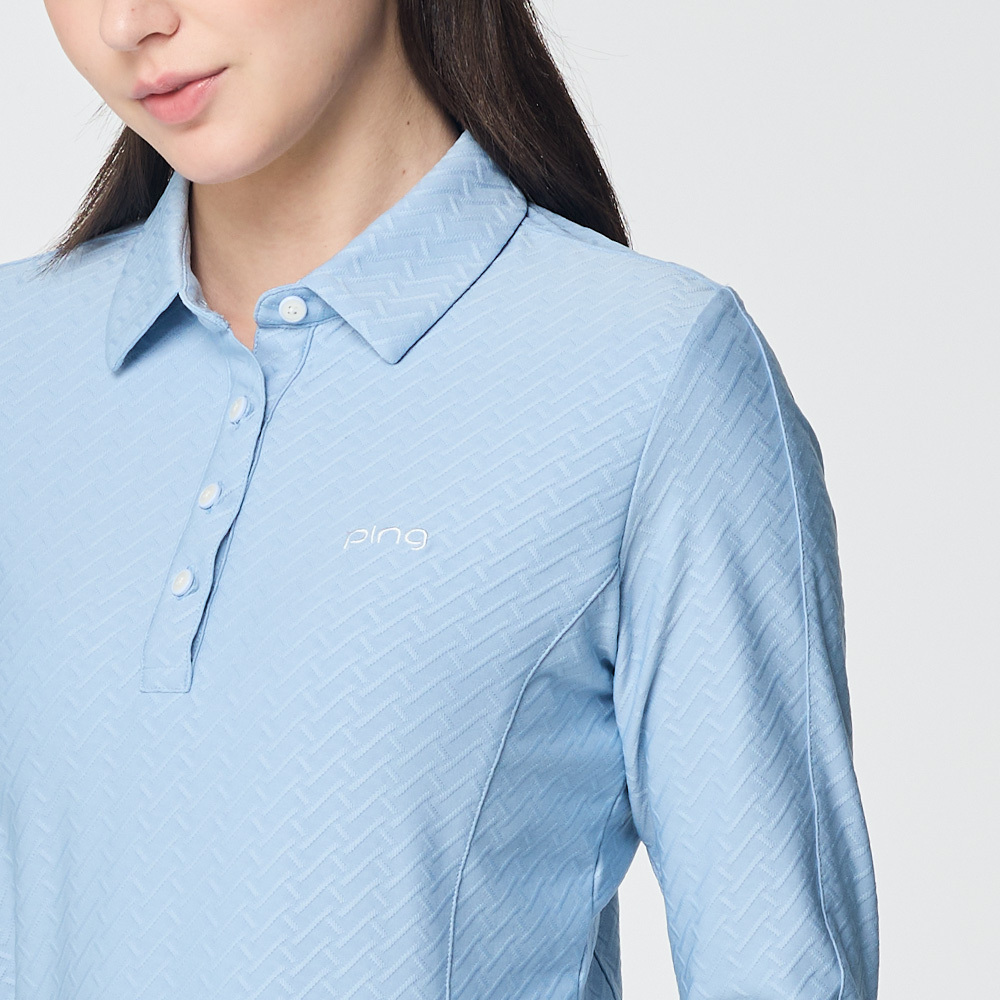 【PING】女款人字紋吸濕排汗長袖POLO衫-藍 / RA25206-53