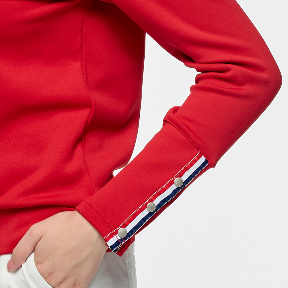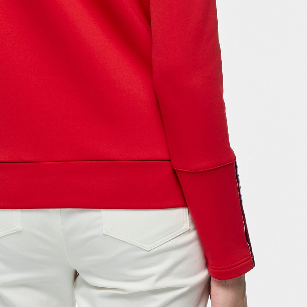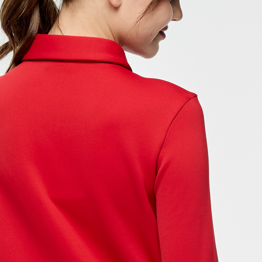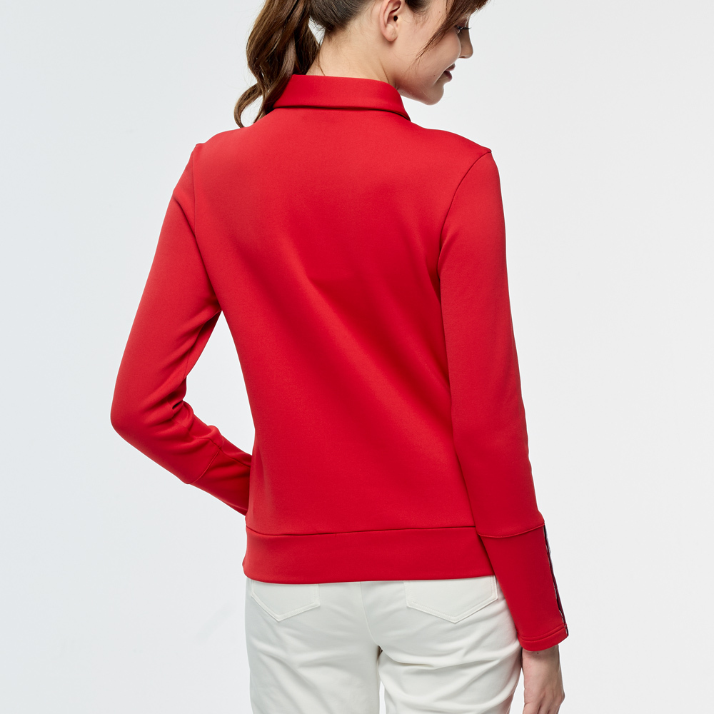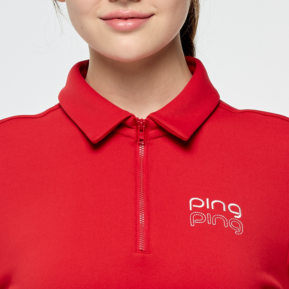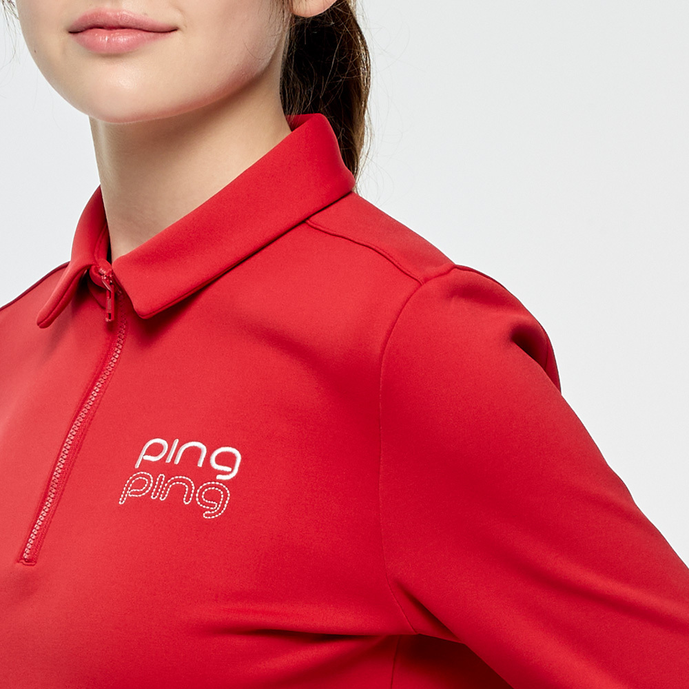 【PING】女款內磨毛蓄熱保暖長袖翻領上衣-紅 / RA25208-18