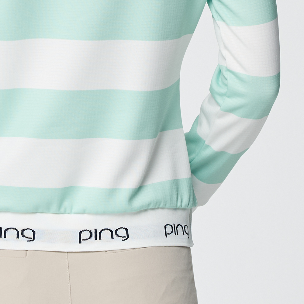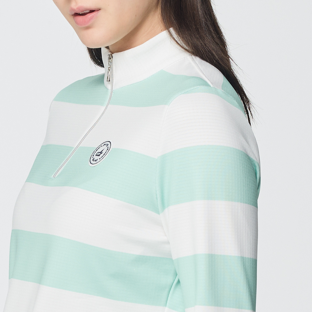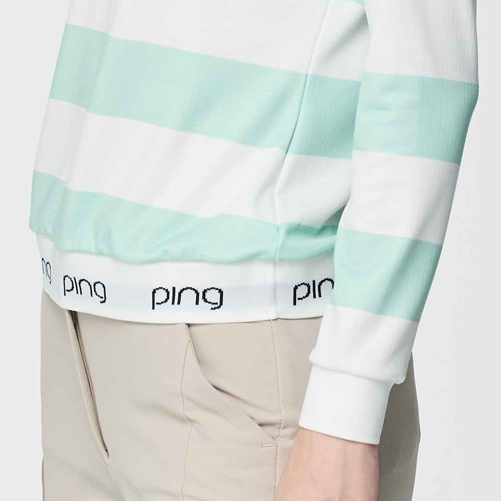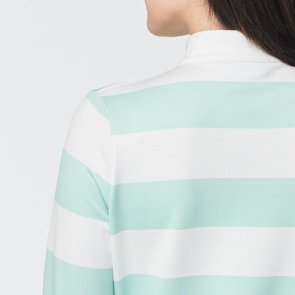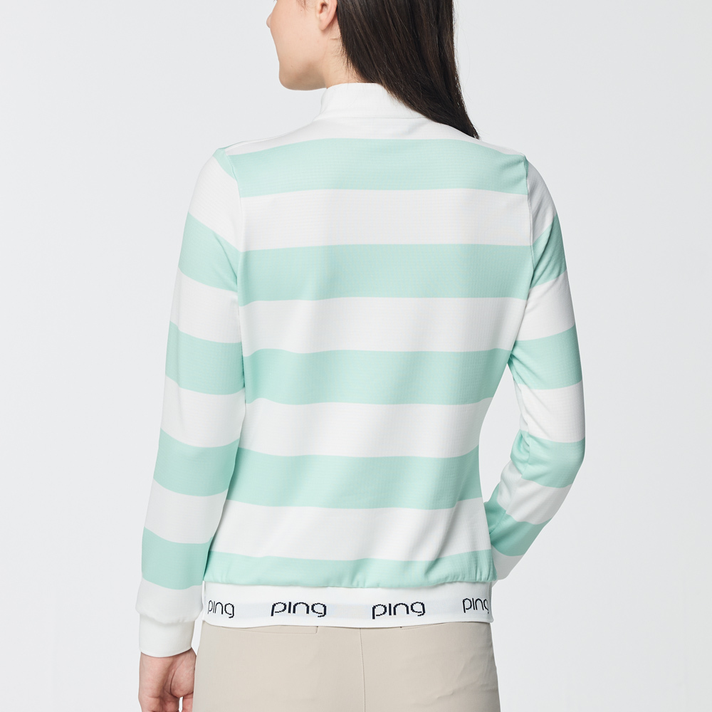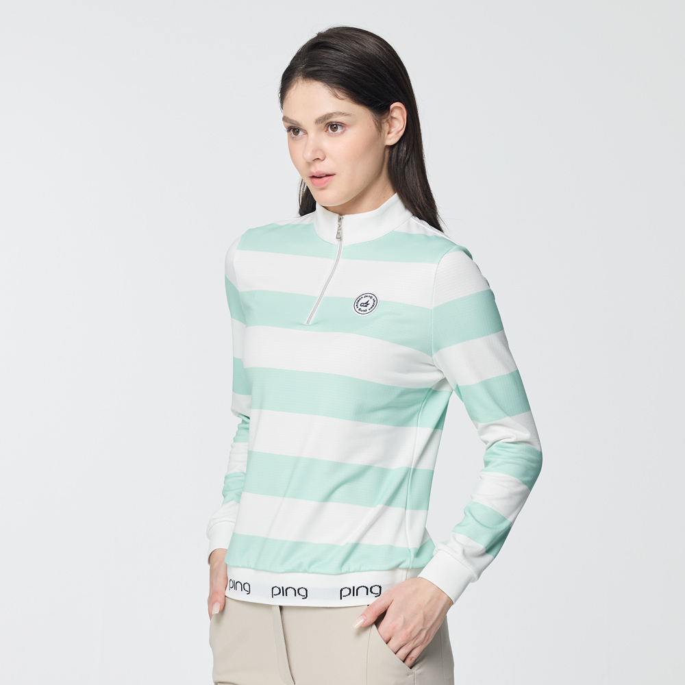 【PING】女款寬條紋蓄熱保暖長袖立領上衣-綠 / RA25210-43