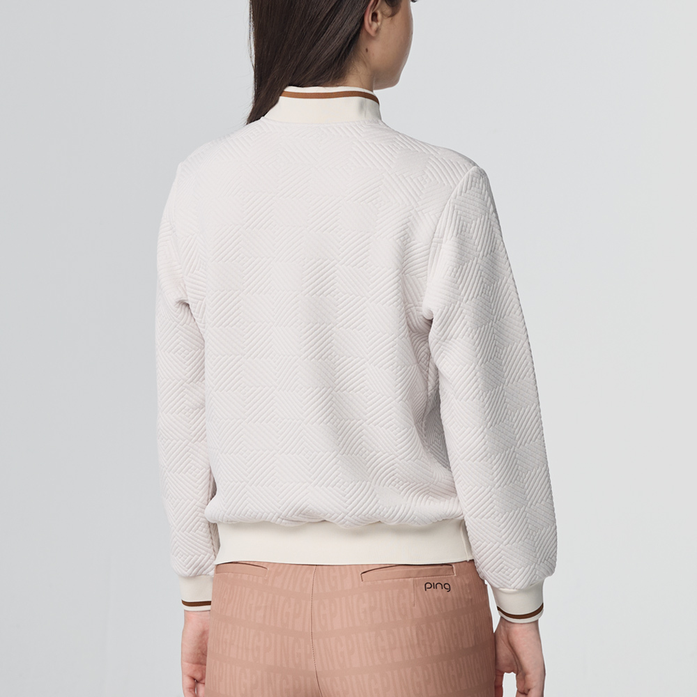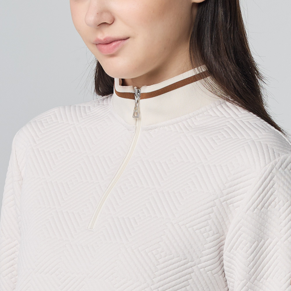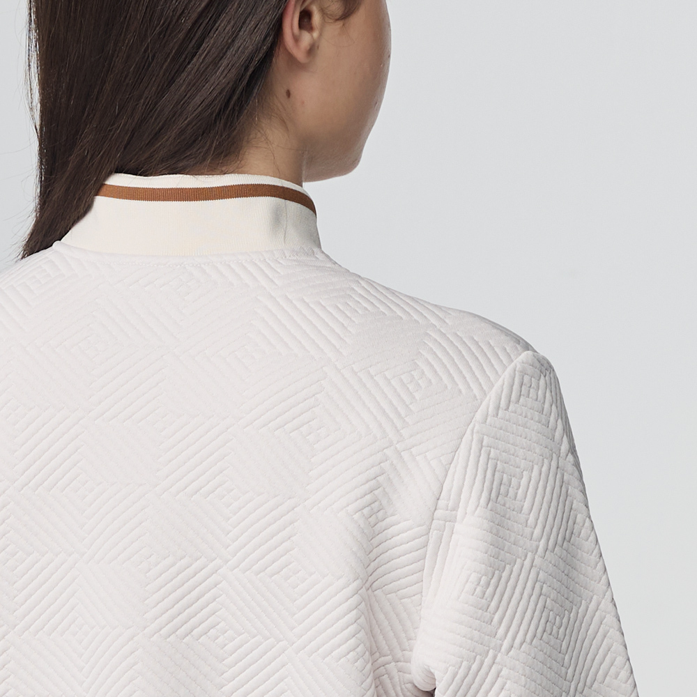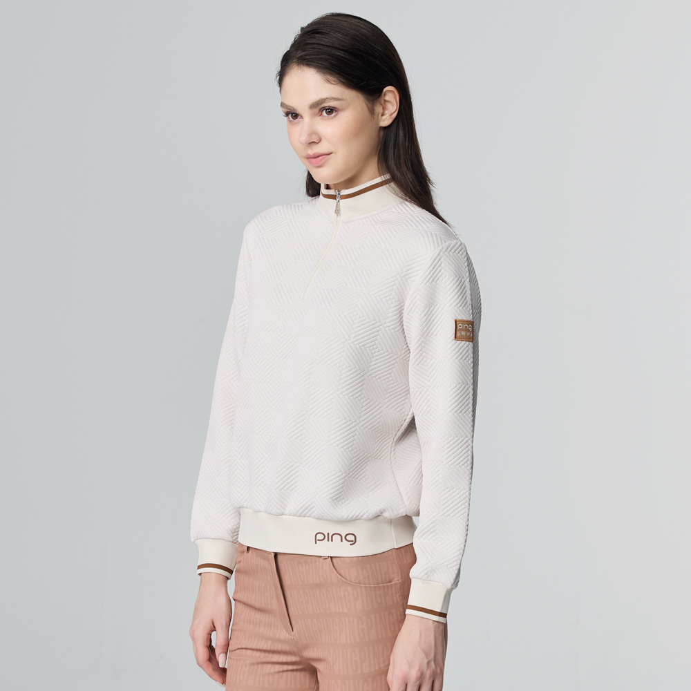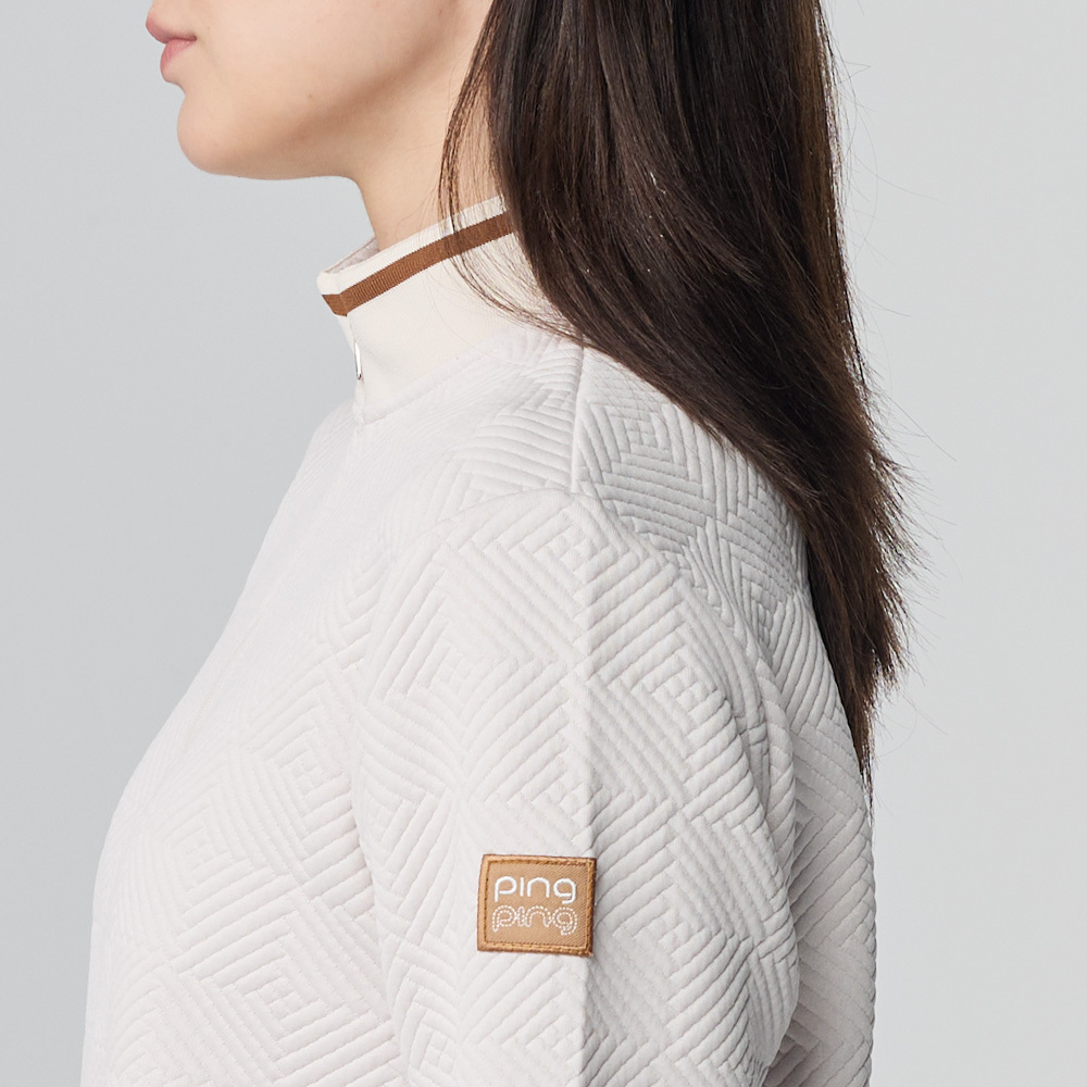 【PING】女款幾何緹花蓄熱保暖長袖立領上衣-卡其 / RA25212-75