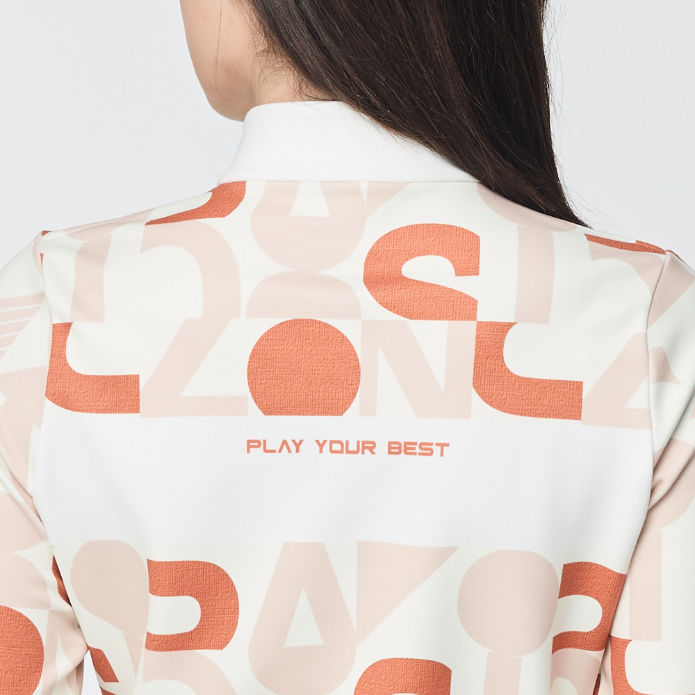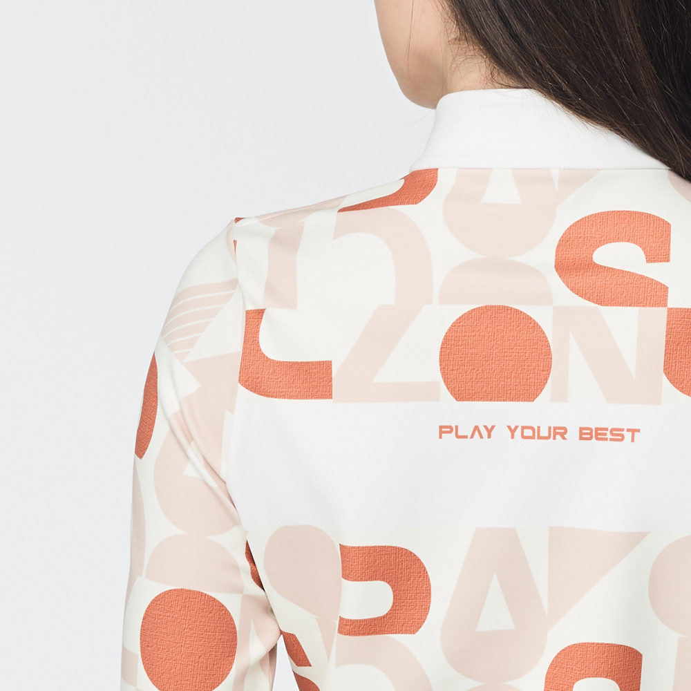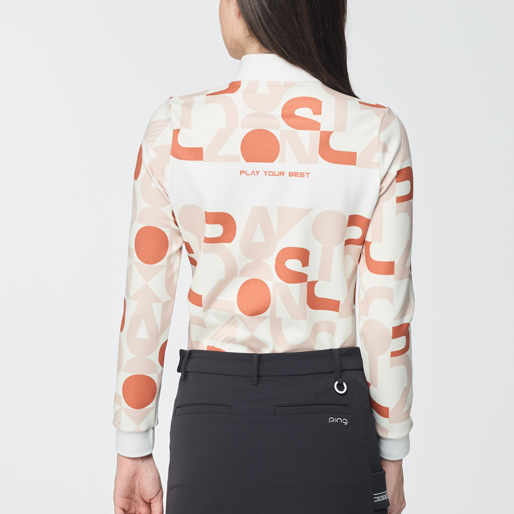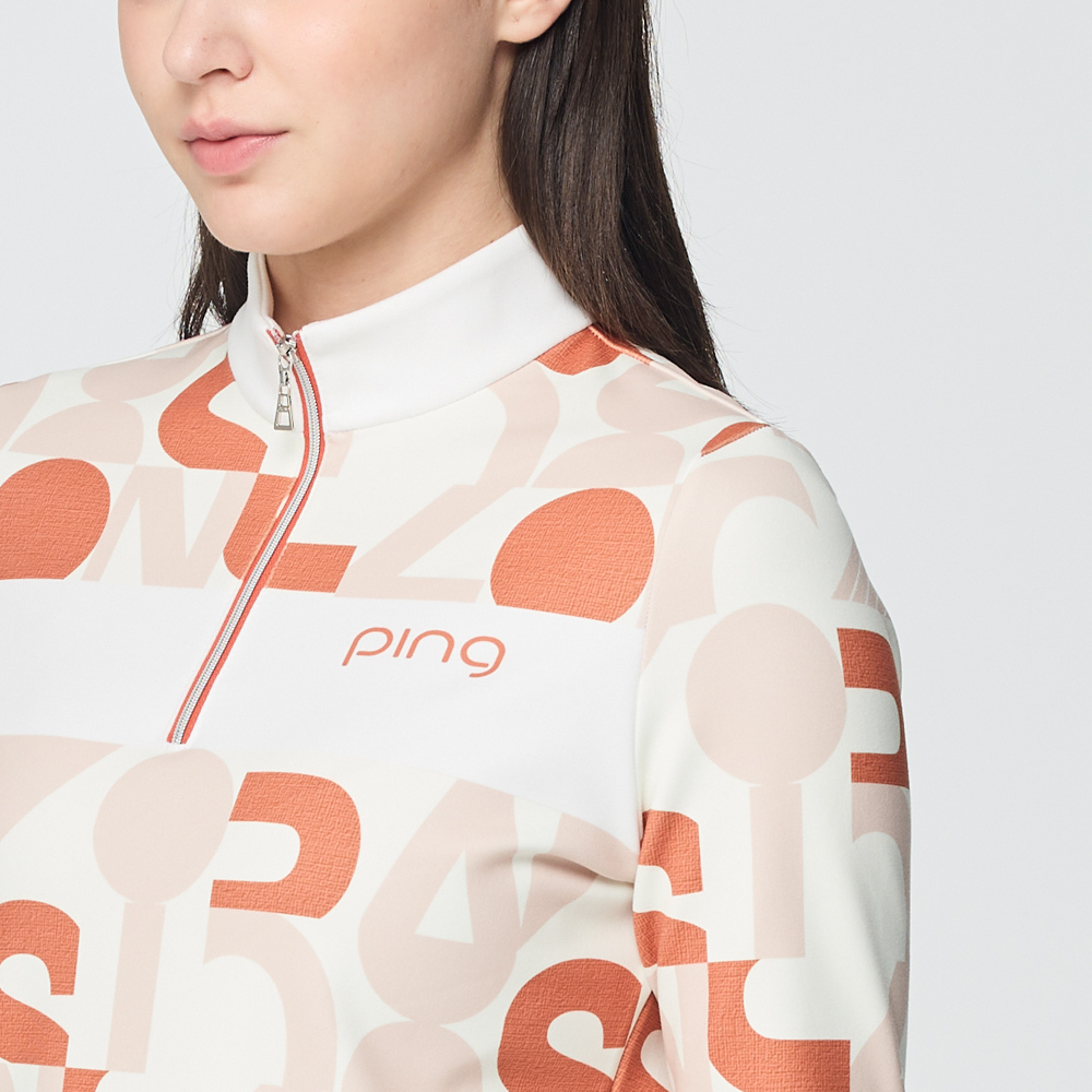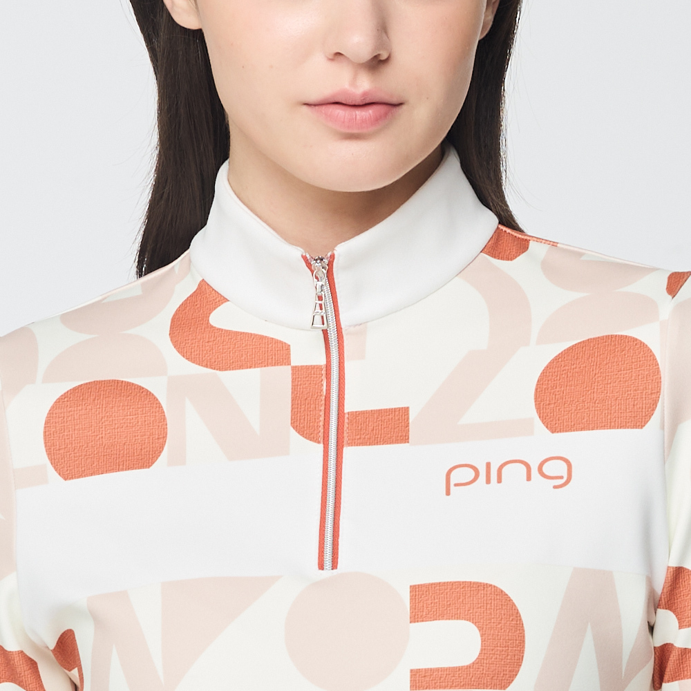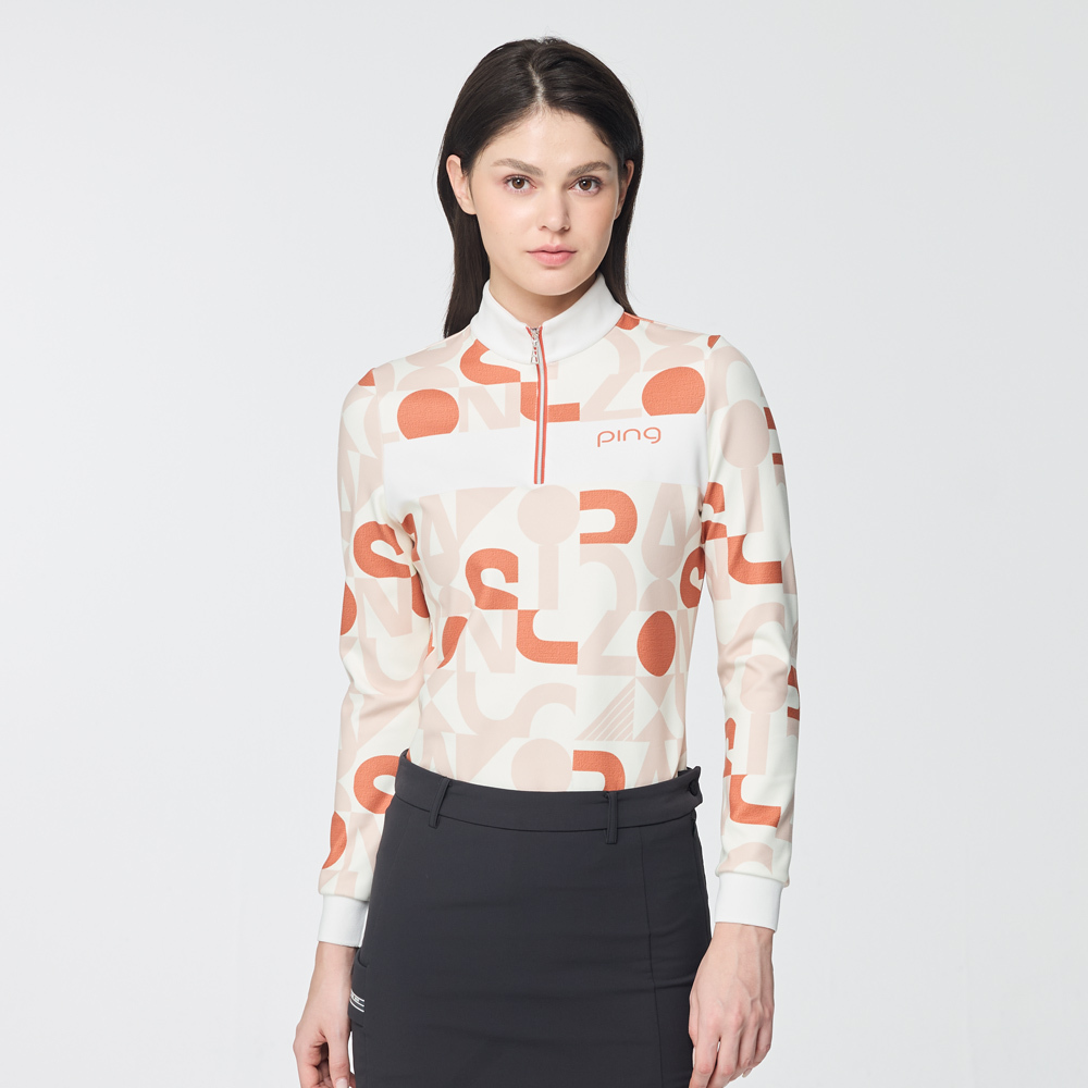 【PING】女款幾何字蓄熱保暖長袖立領上衣-卡其 / RA25215-75