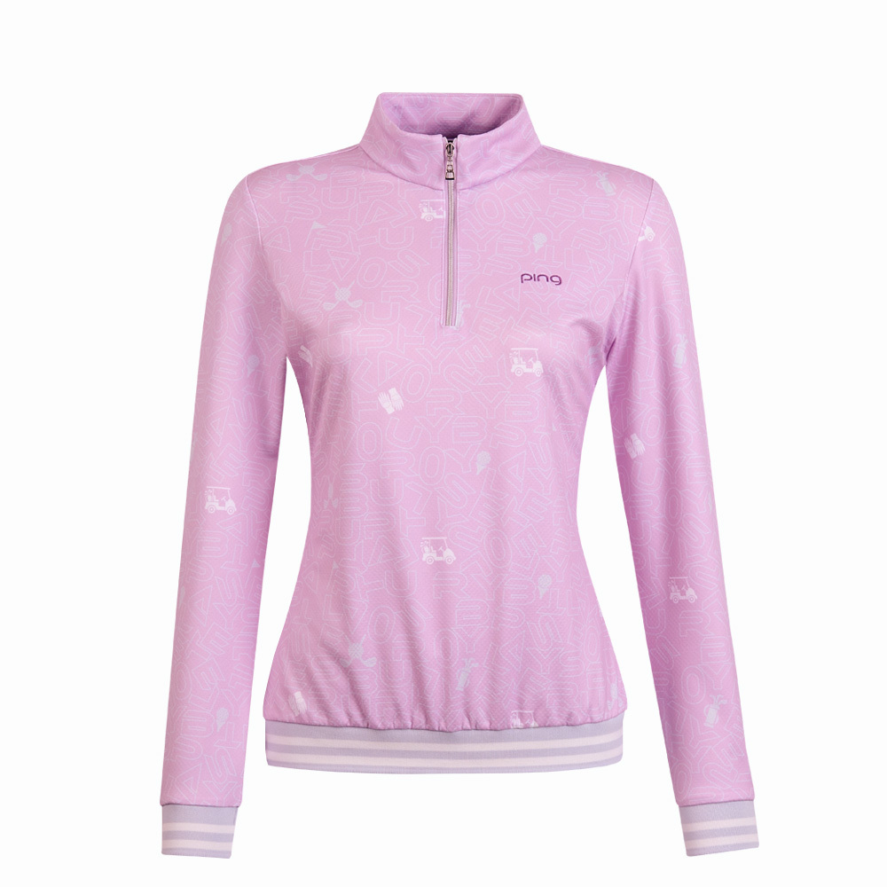 【PING】女款趣味高爾夫吸濕排汗立領上衣-粉 / RA25219-15