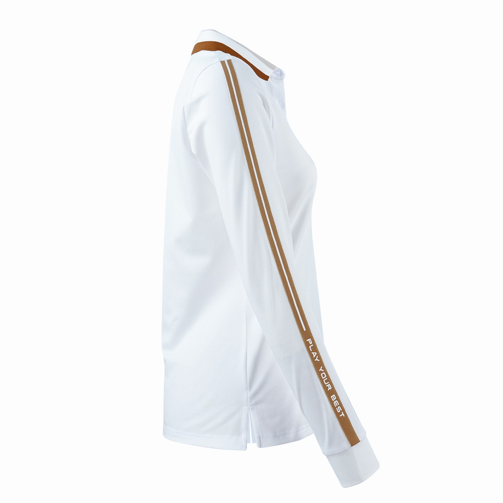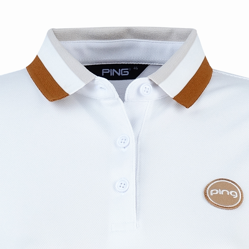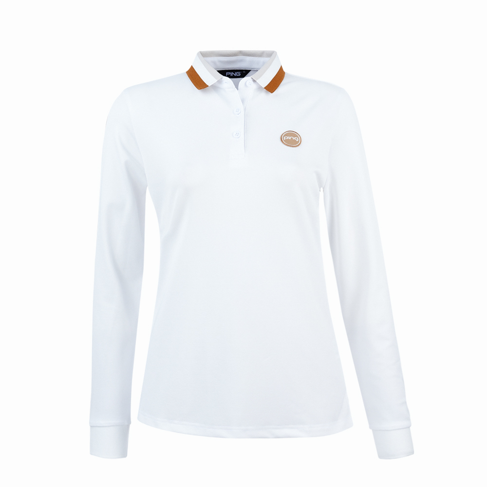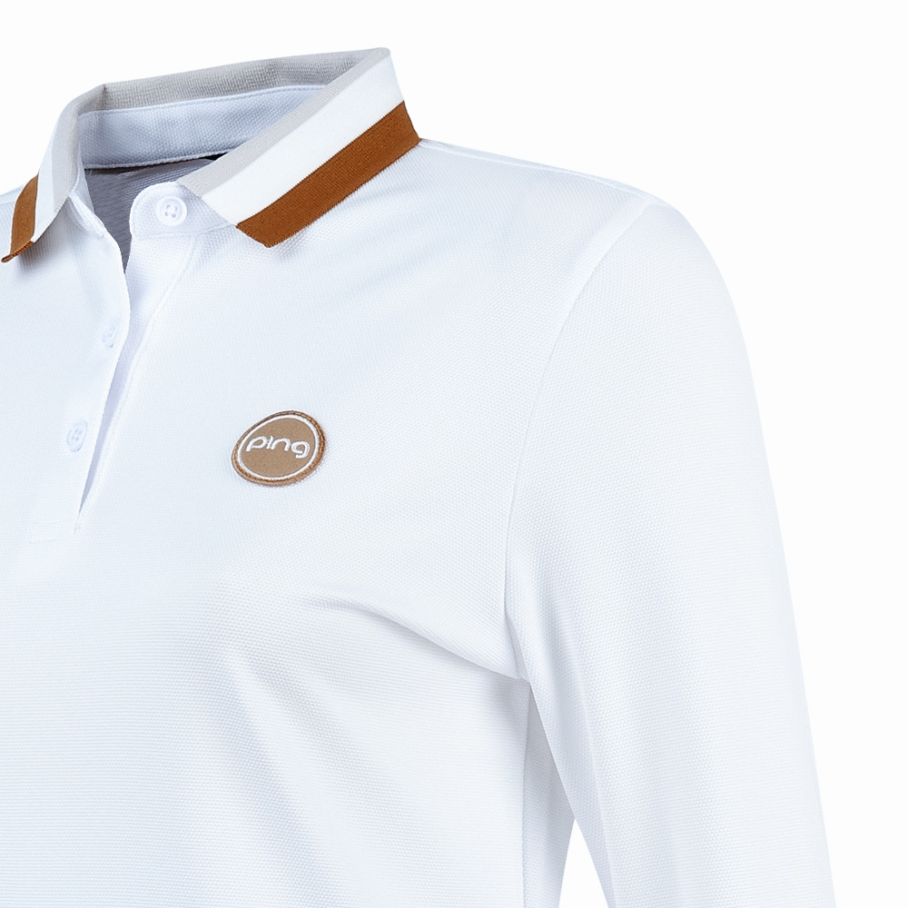 【PING】女款肩袖織帶高爾夫薄長袖POLO衫-白 / RA25290-87
