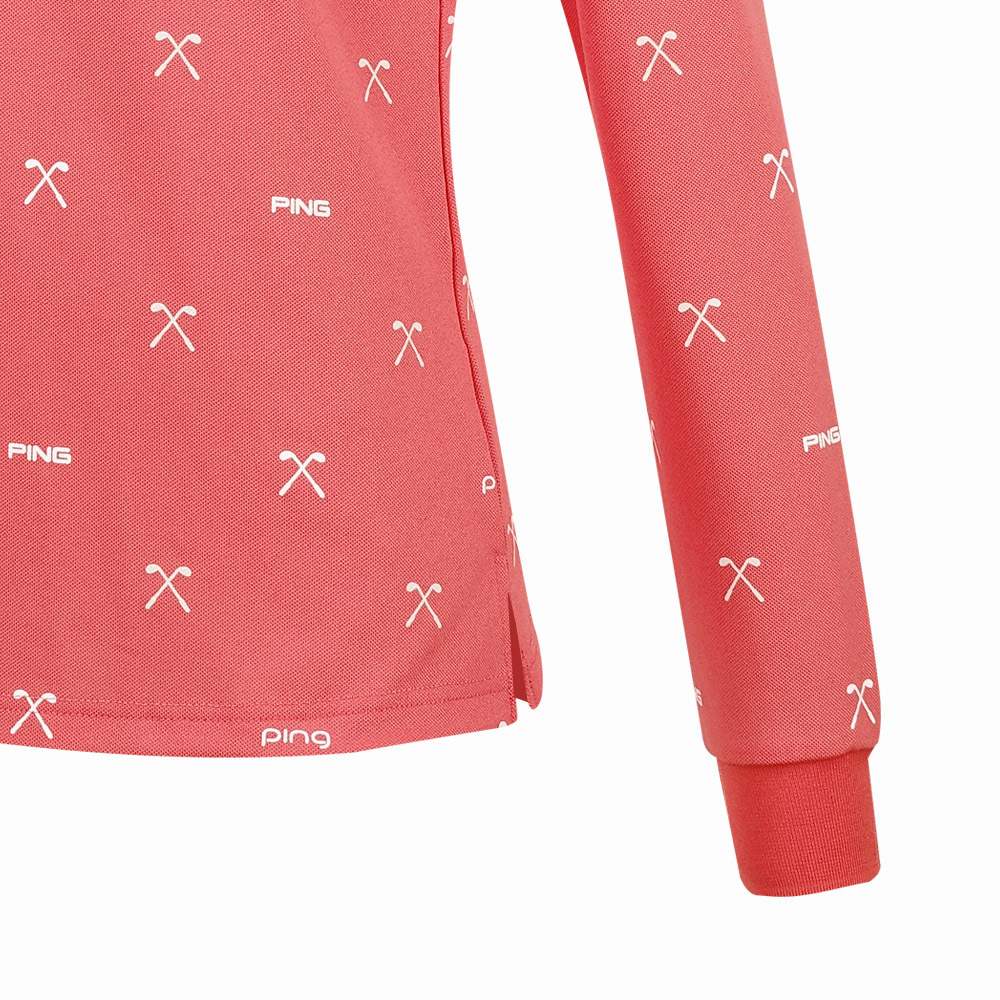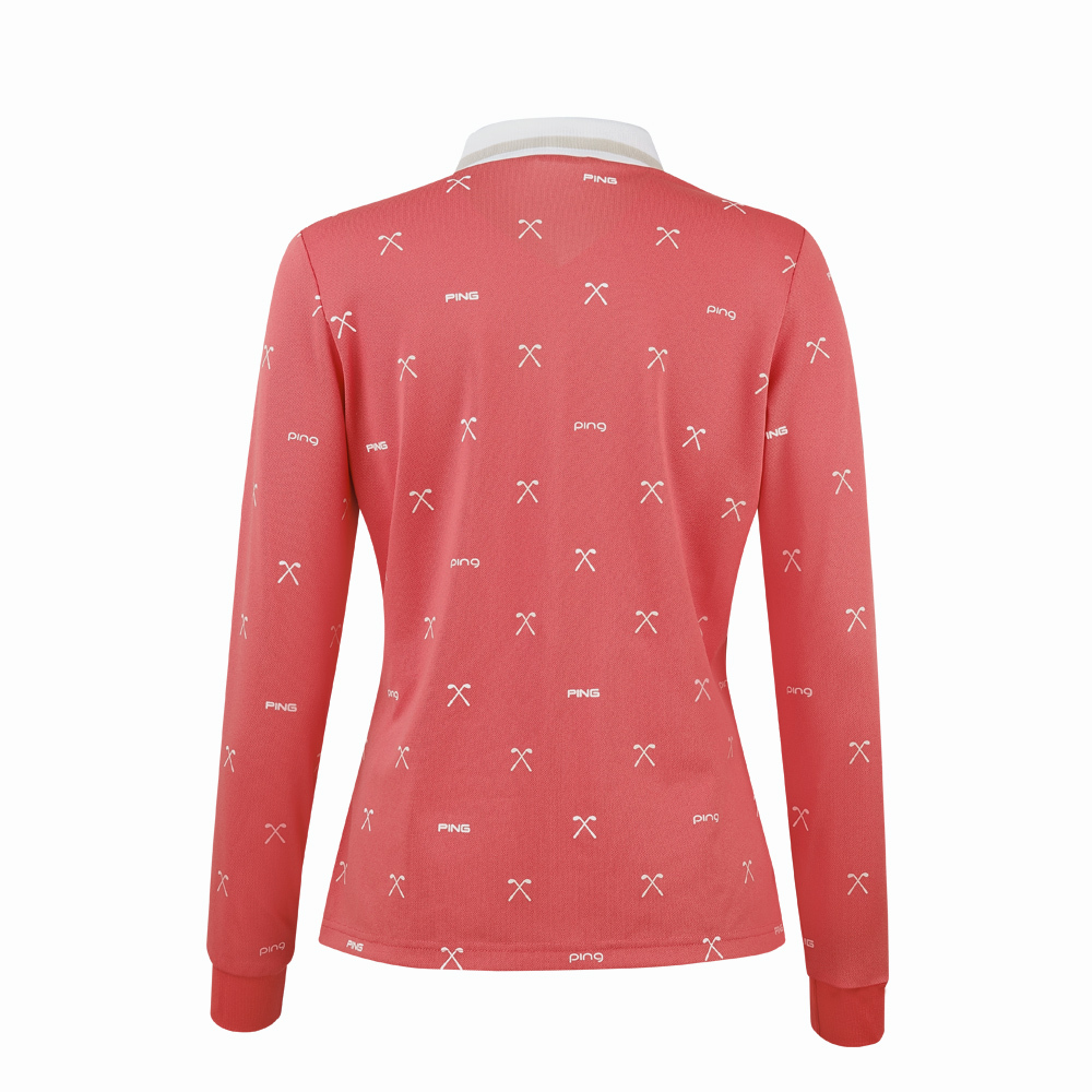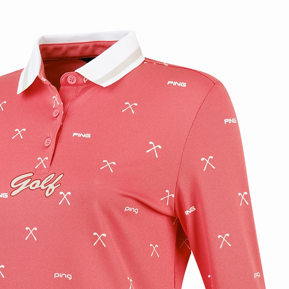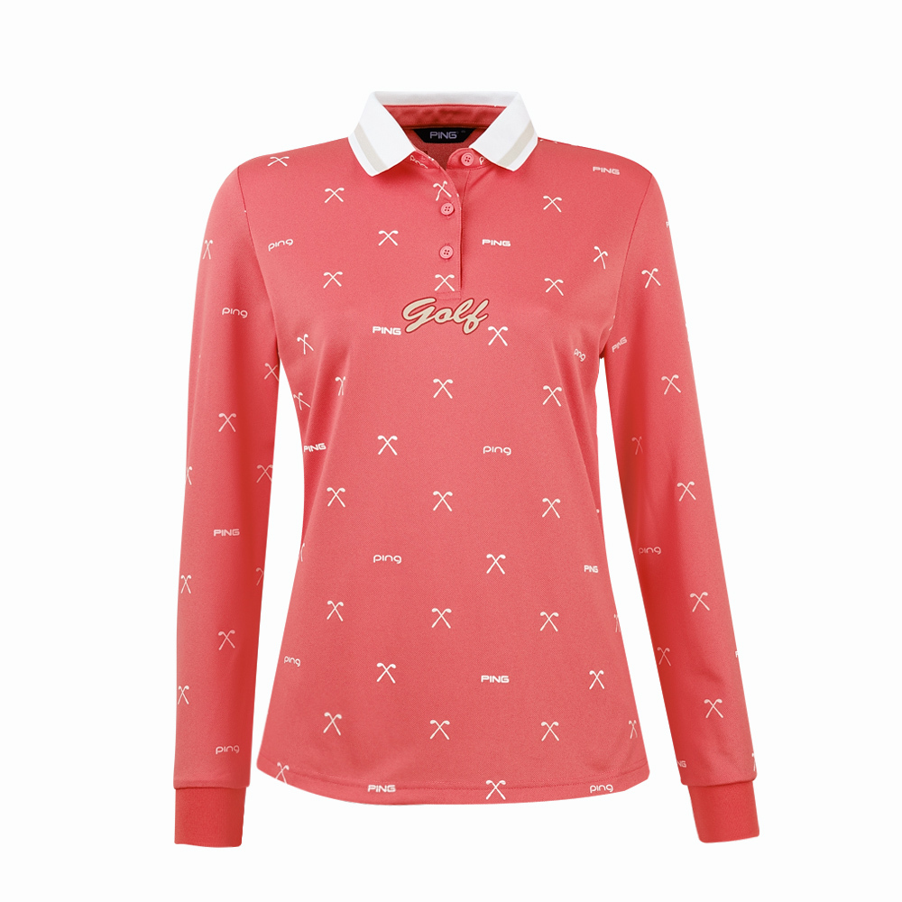 【PING】女款球桿吸濕排汗抗UV高爾夫薄長袖POLO衫-橘 / RA25291-25