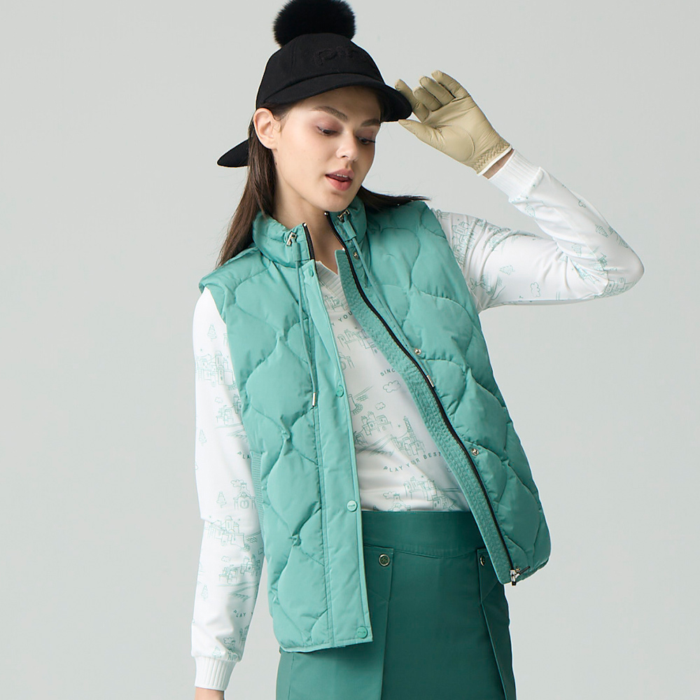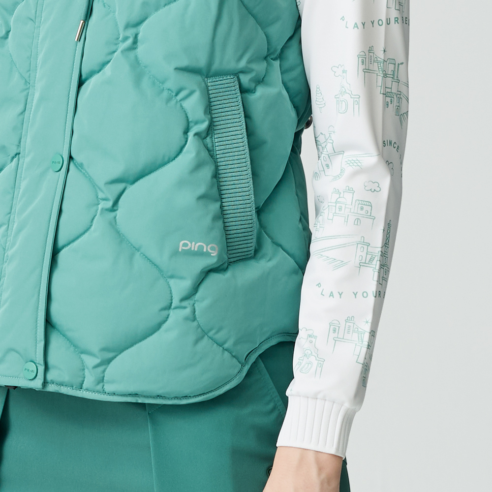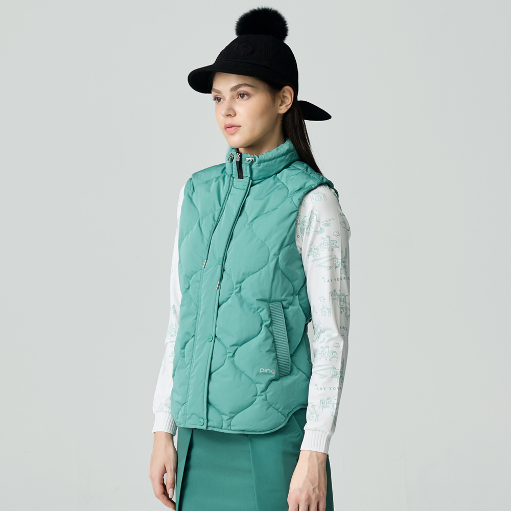 【PING】女款防風防潑水蓄熱保暖羽絨背心-綠 / RB25220-46