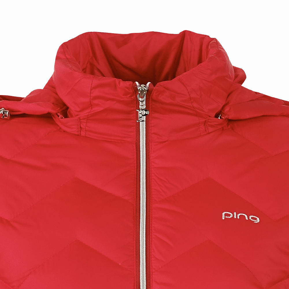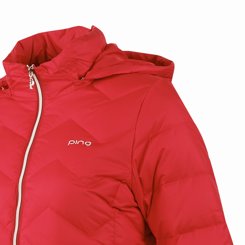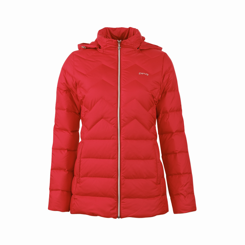 【PING】女款可拆帽防風保暖羽絨外套-橘紅 / RC19221-28