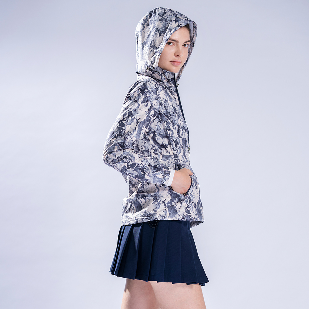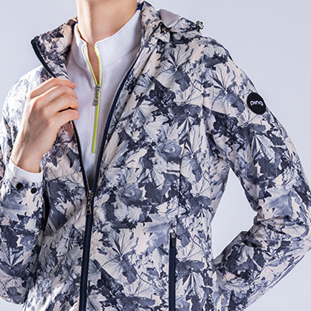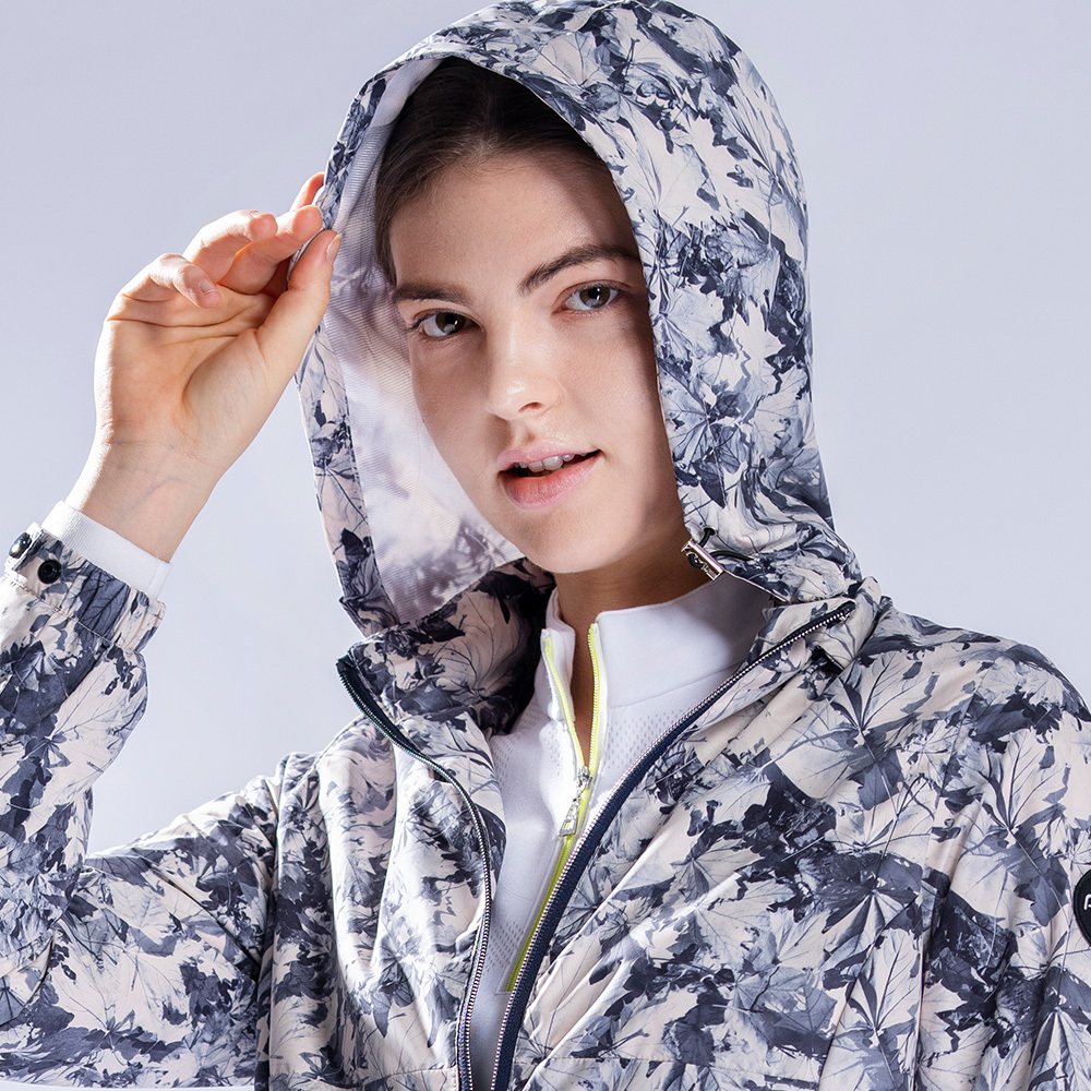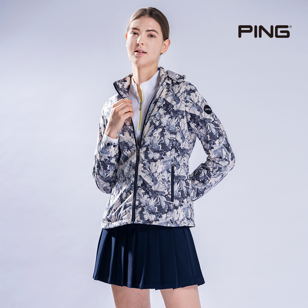【PING】女款印花防風透氣防潑水薄外套-米白 / RC22215-73