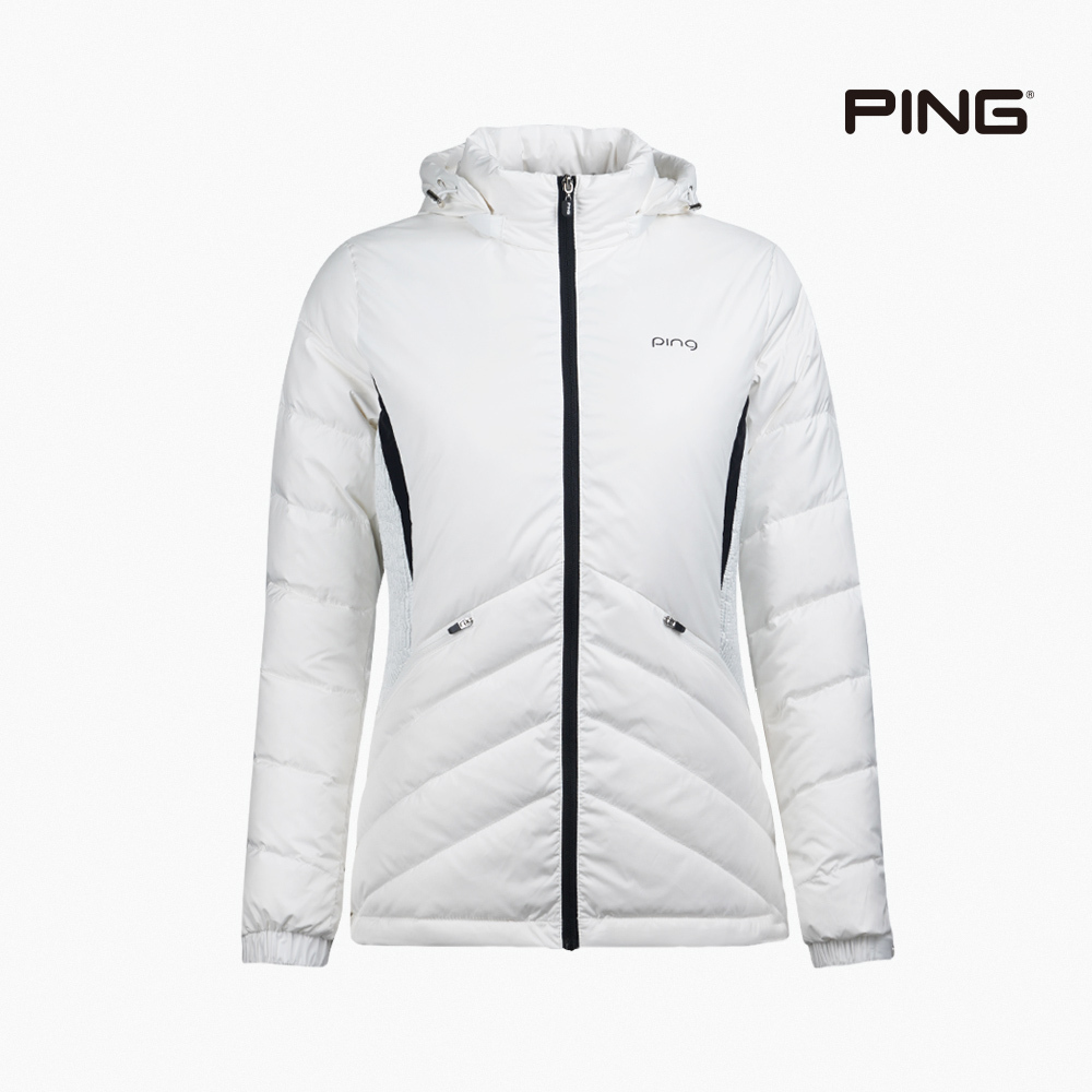 【PING】女款時尚可拆帽防潑水保暖羽絨外套-白 / RC22220-87