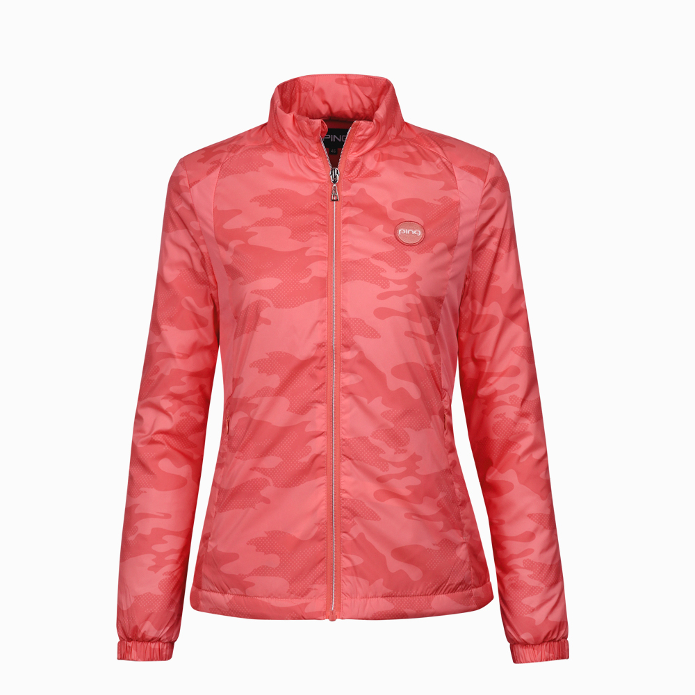 【PING】女款迷彩配布防風防潑水鋪棉外套-粉紅 / RC23210-15