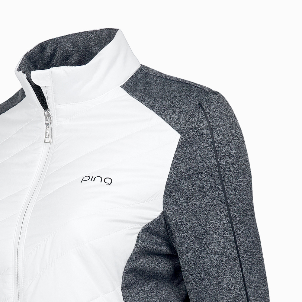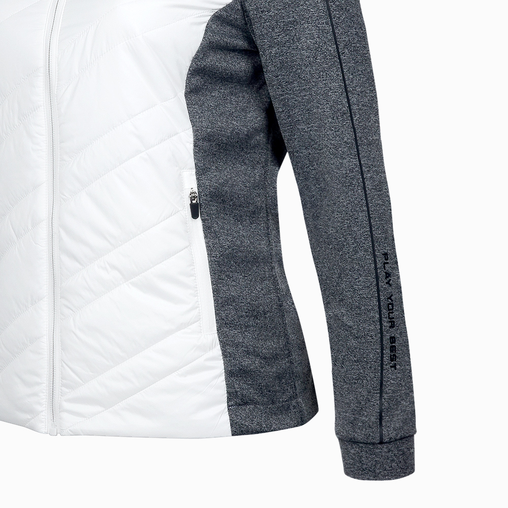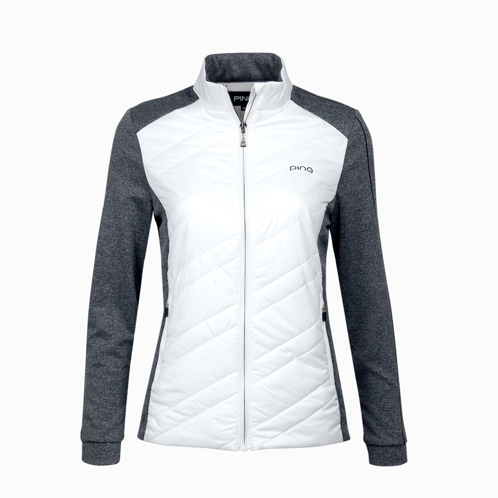 【PING】女款異素材配色防風防潑水鋪棉外套-白 / RC23215-83