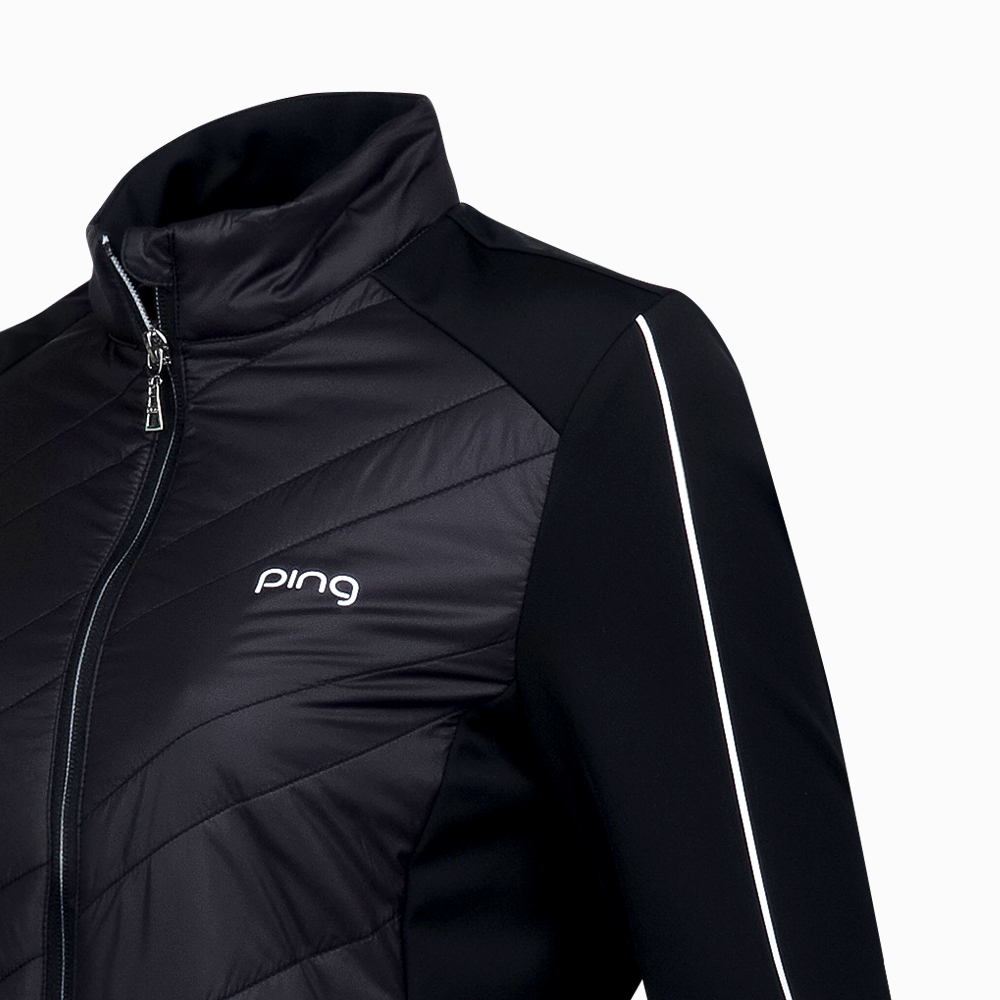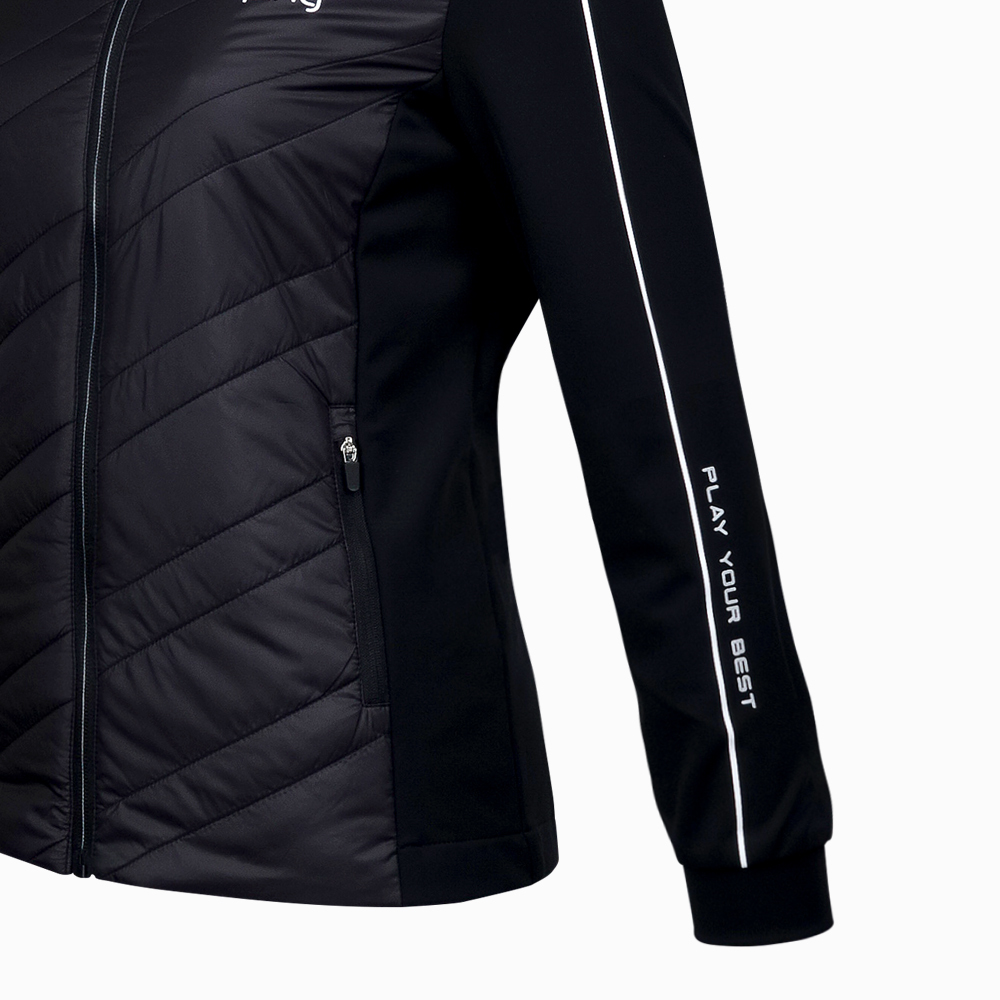 【PING】女款異素材配色防風防潑水鋪棉外套-黑 / RC23215-88