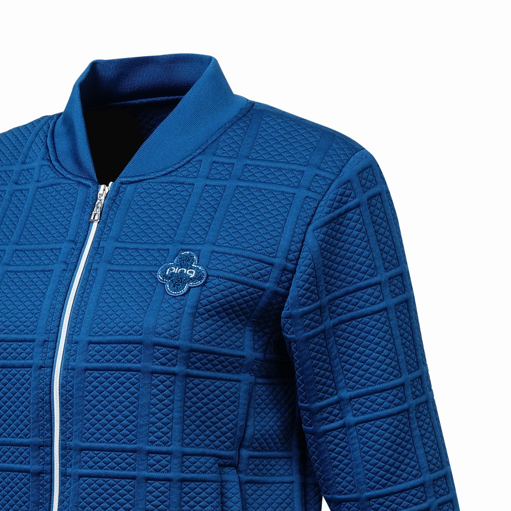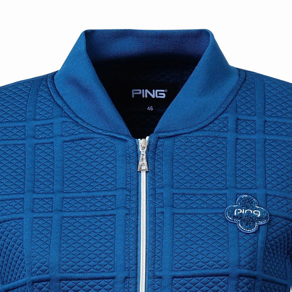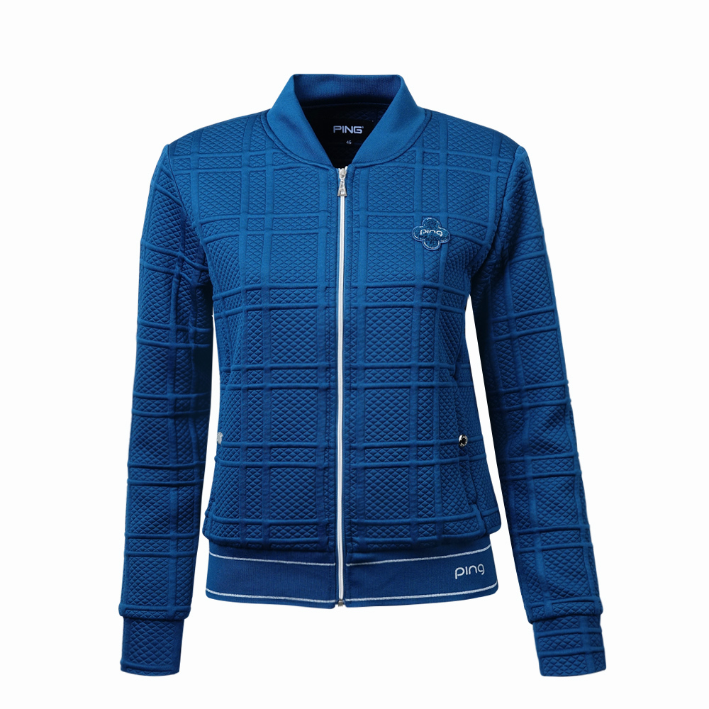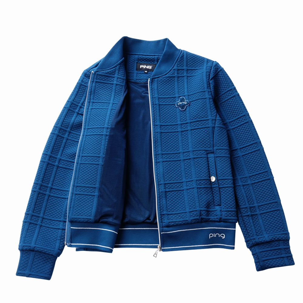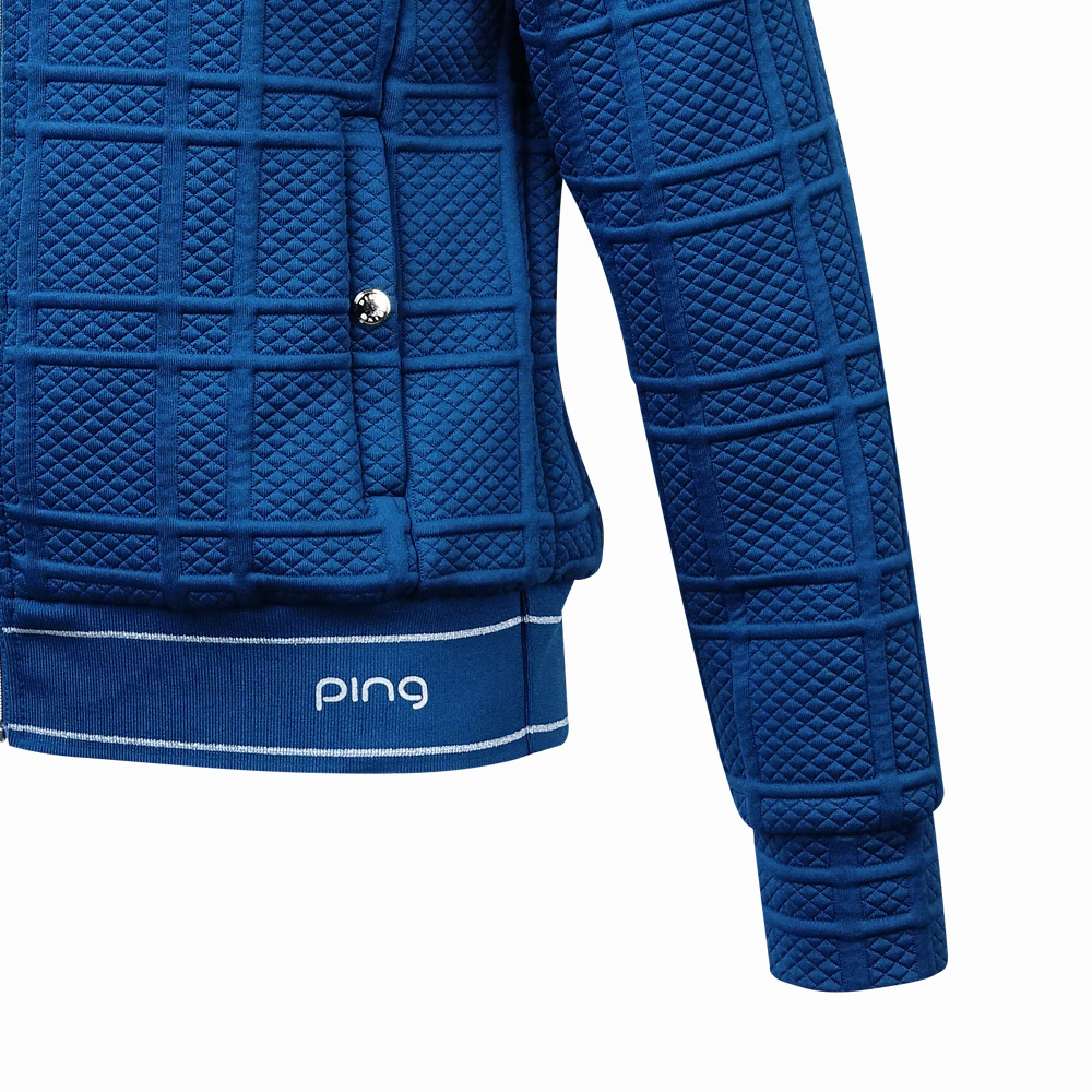 【PING】女款小花繡標立體格紋緹花高爾夫外套-藍 / RC24211-56