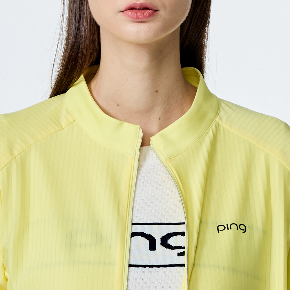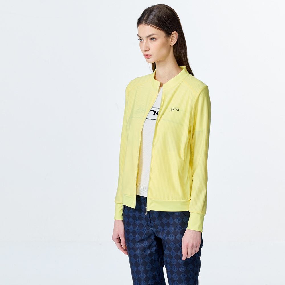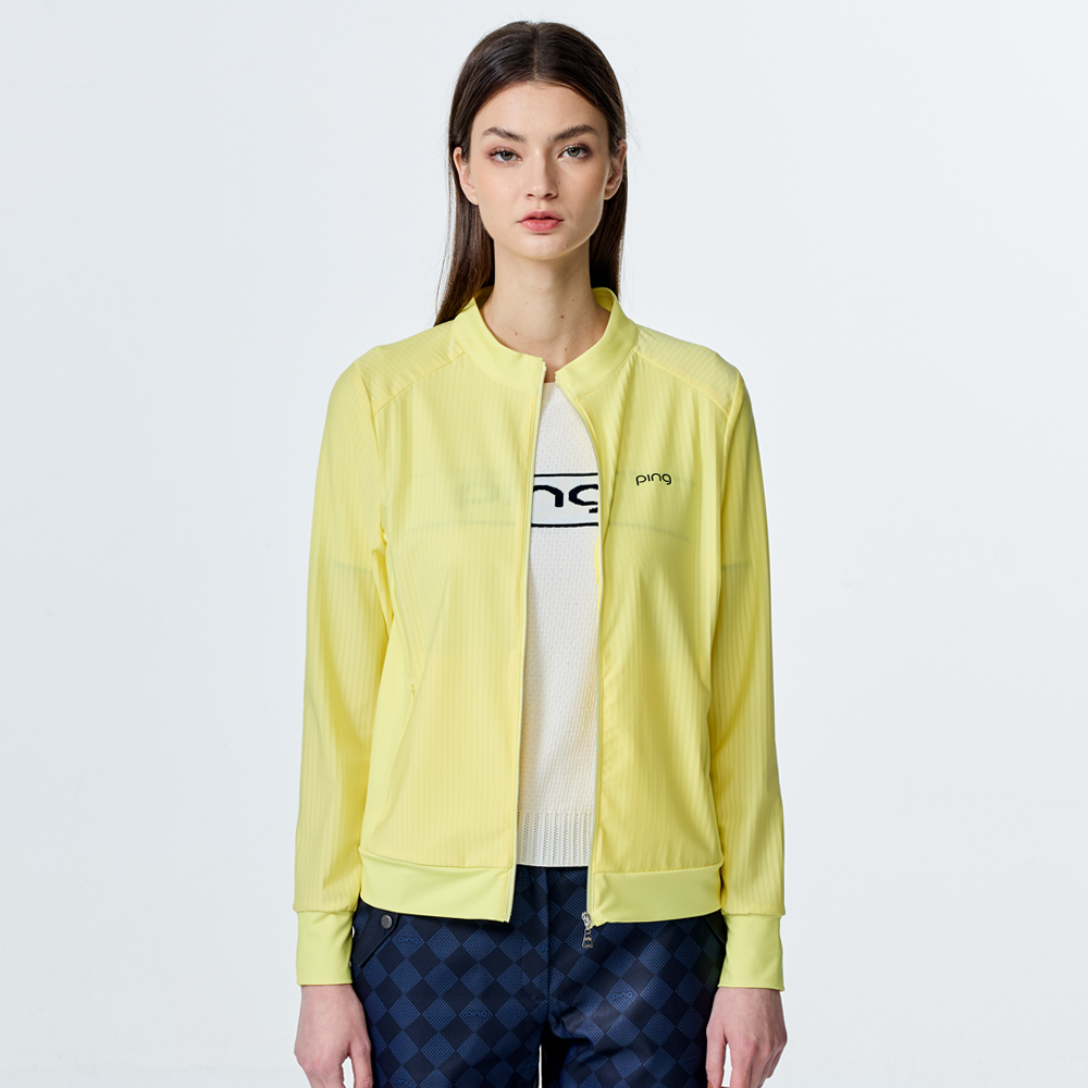 【PING】女款條紋吸濕排汗涼感薄外套-黃 / RC25101-33