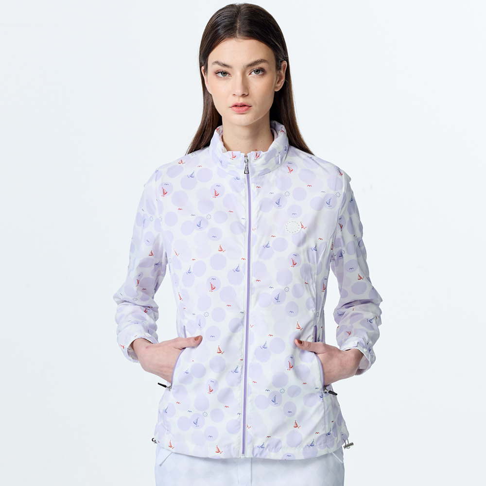 【PING】女款帆船點點防風防潑水薄外套-淺紫 / RC25116-63