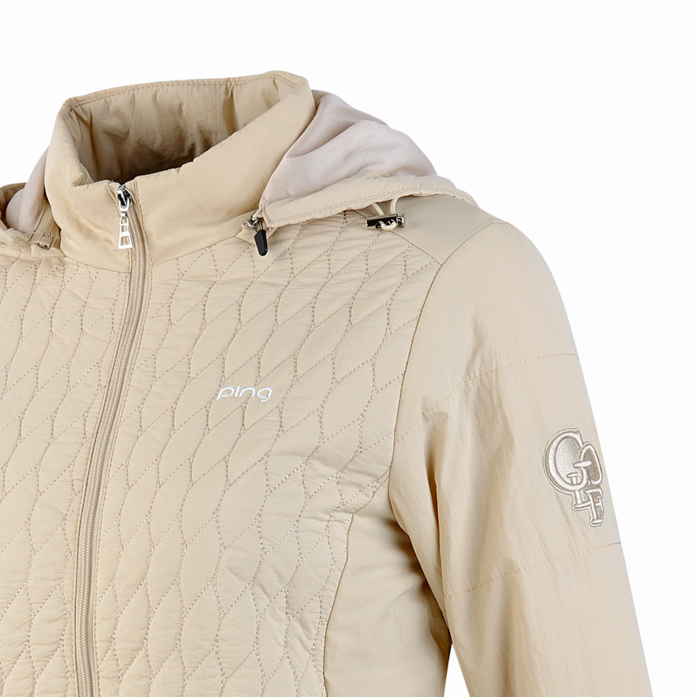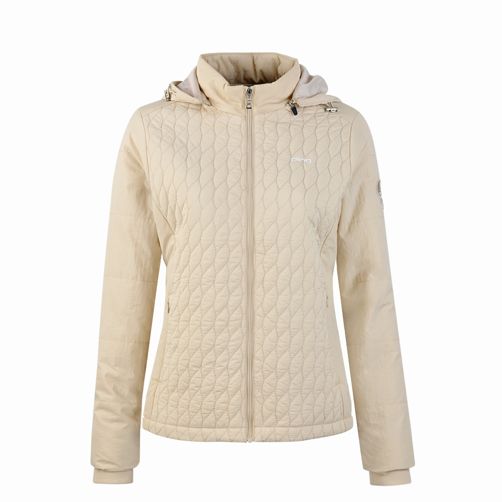 【PING】女款麻花車棉蓄熱保暖舖棉外套-卡其 / RC25216-75