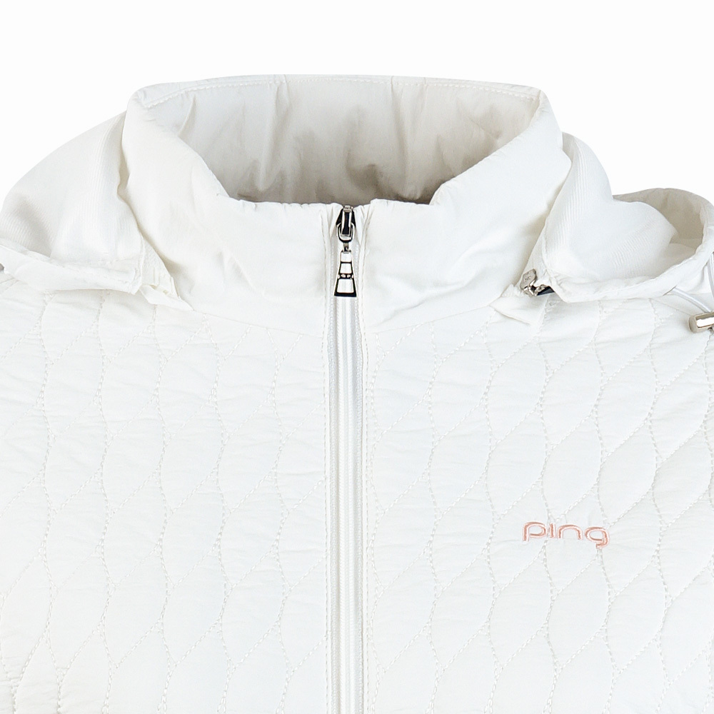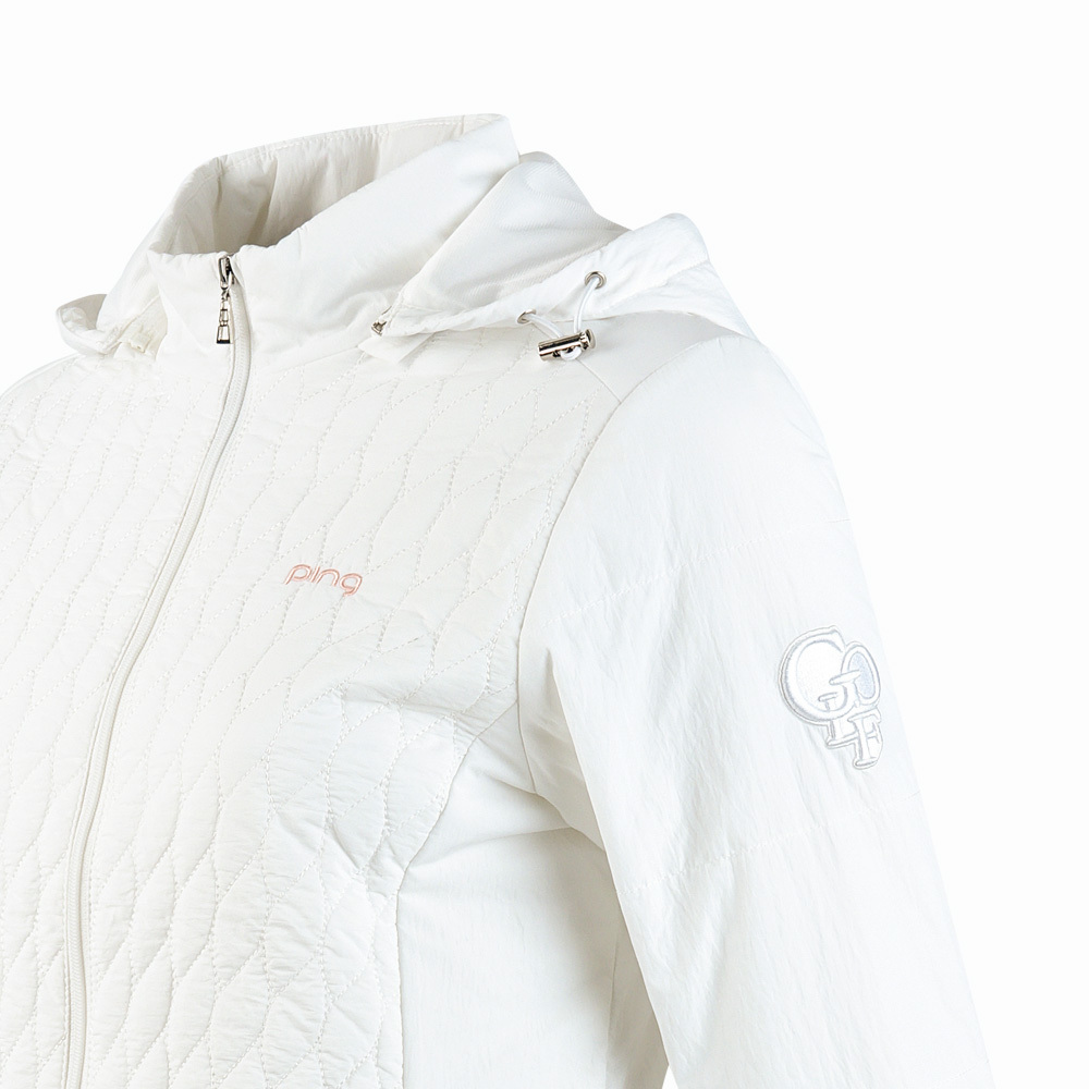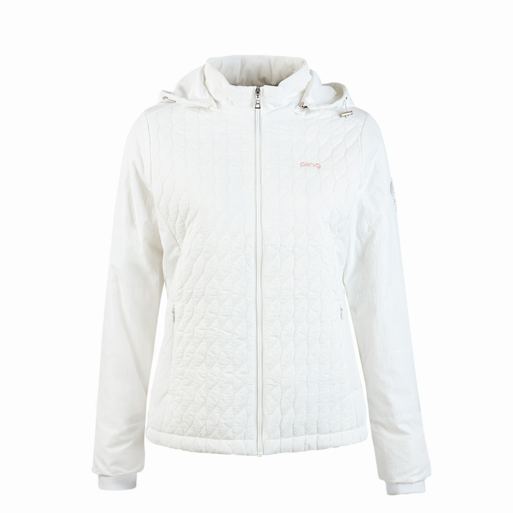 【PING】女款麻花車棉蓄熱保暖舖棉外套-白 / RC25216-87