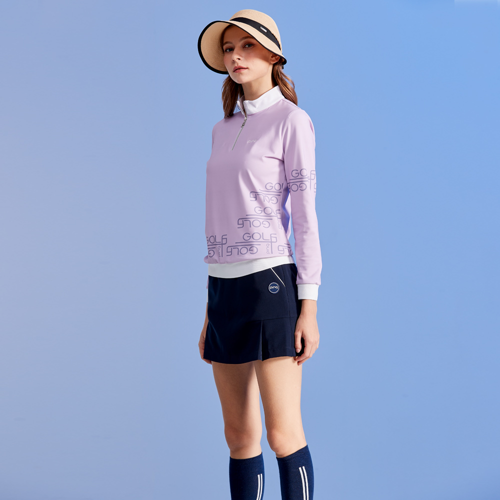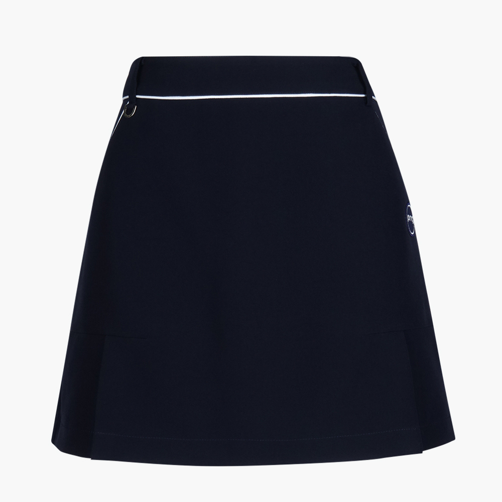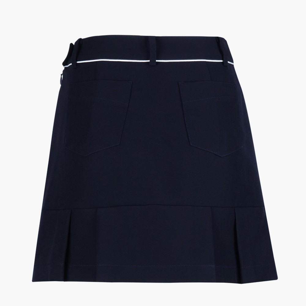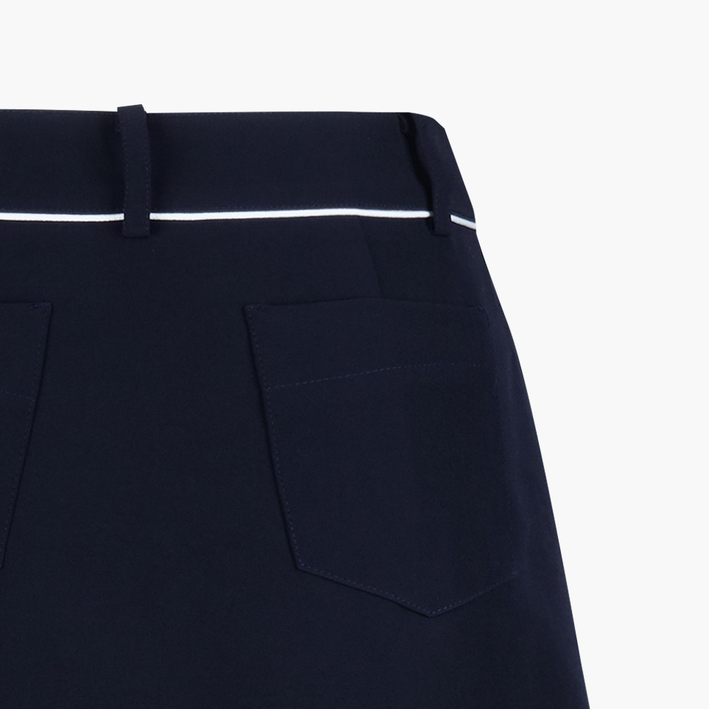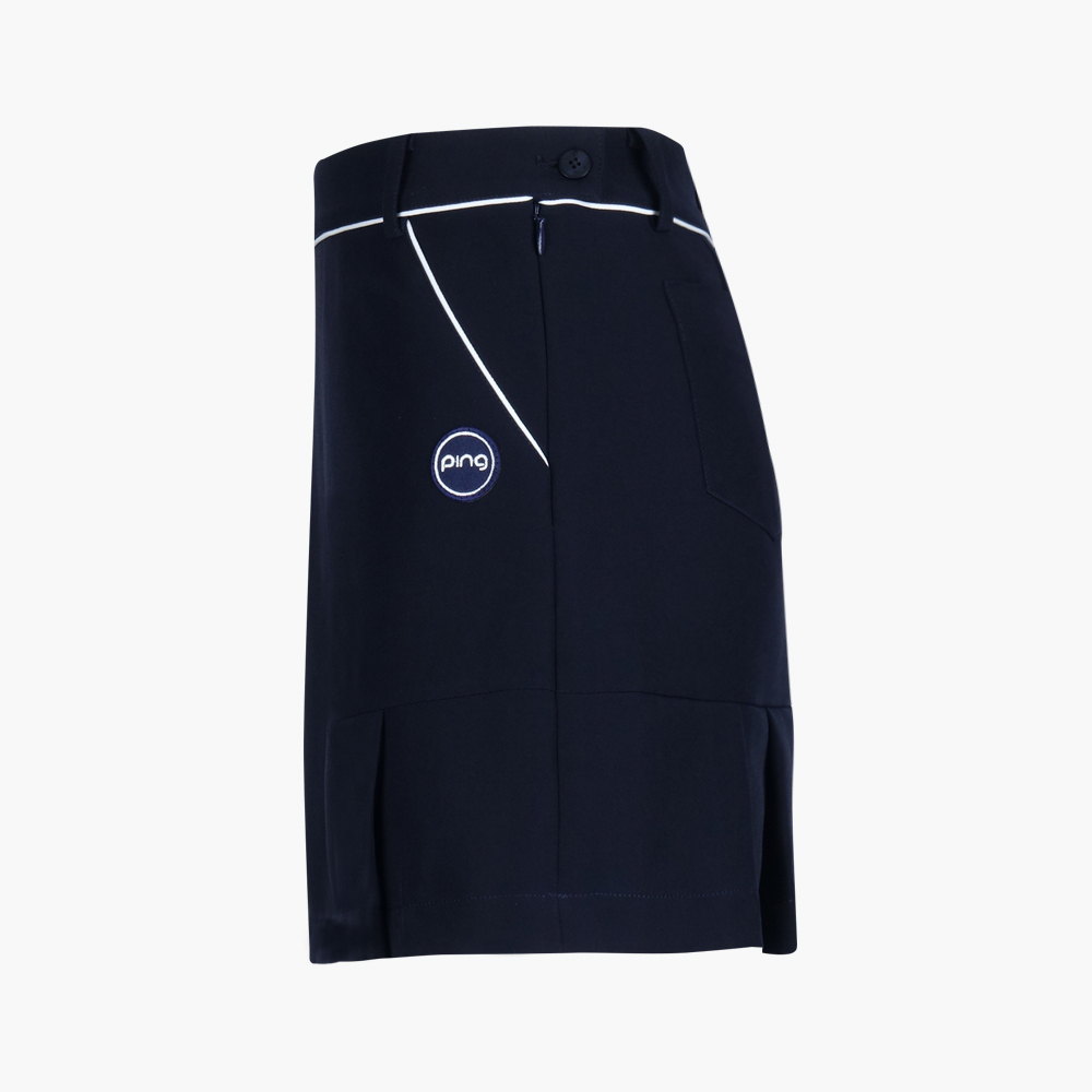 【PING】女款鑲邊壓褶高彈性短裙-深藍 / RD23211-58