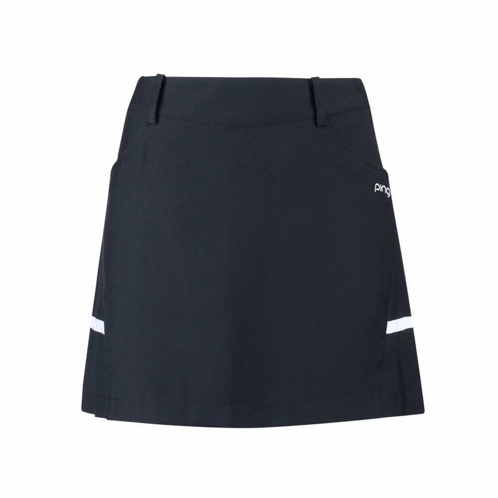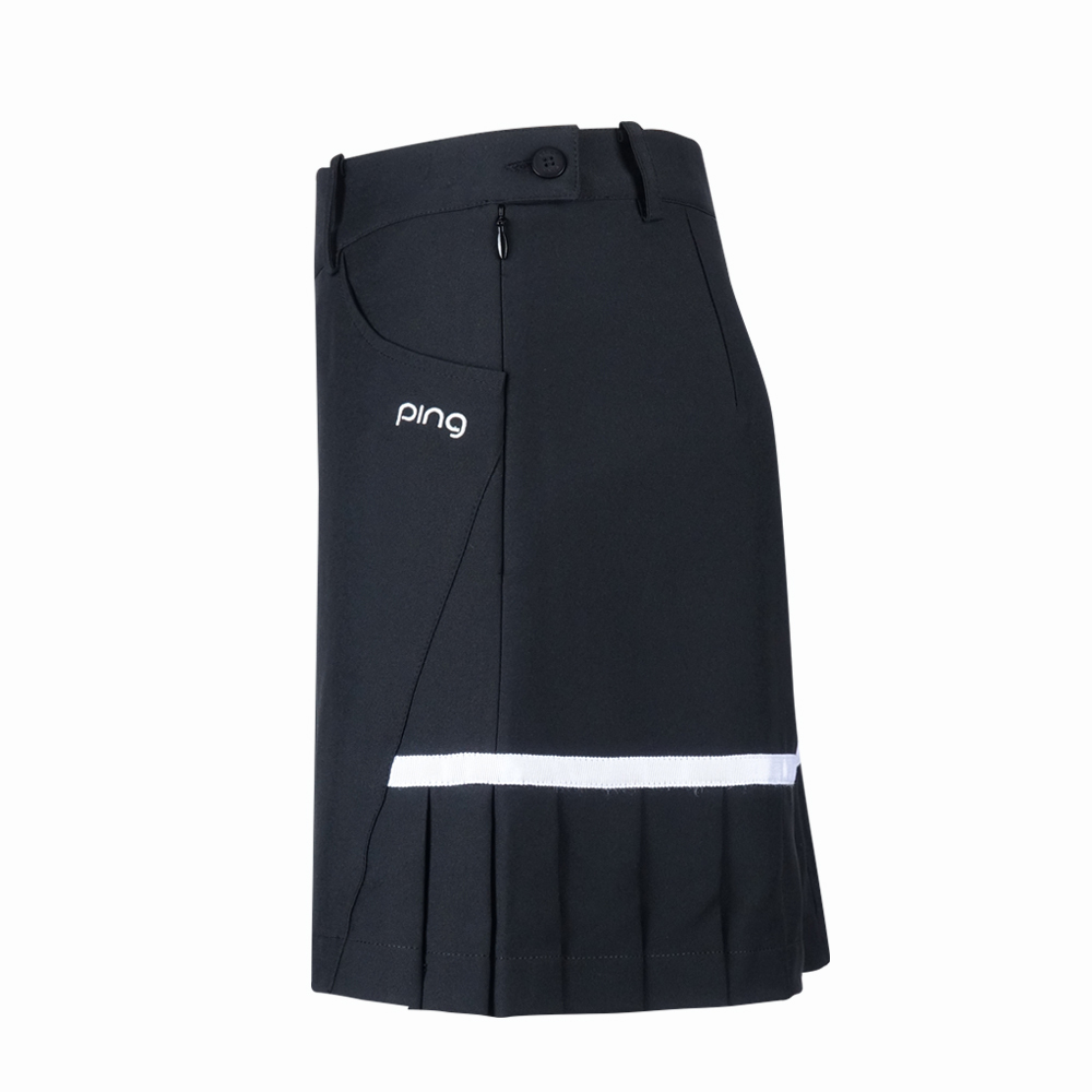 【PING】女款織帶後百褶高爾夫短裙-黑 / RD24140-88