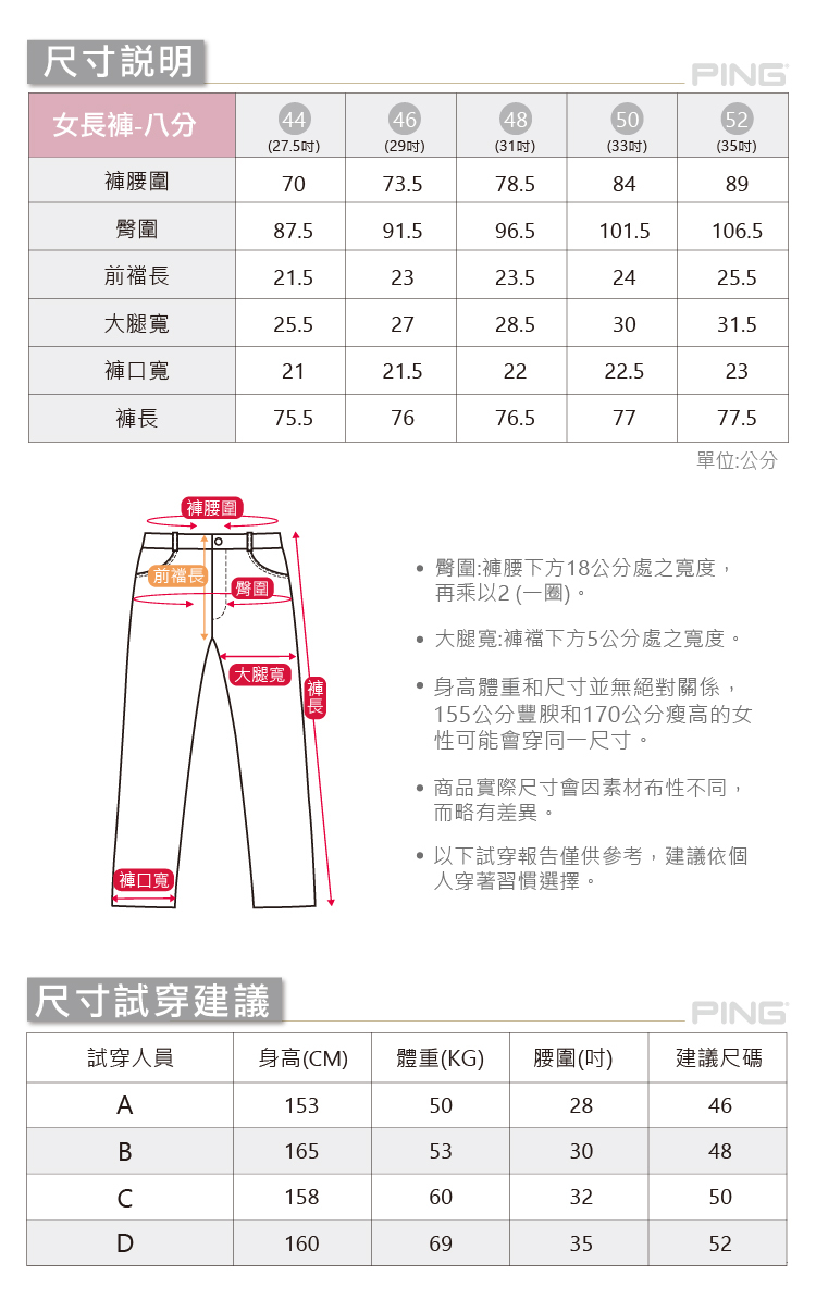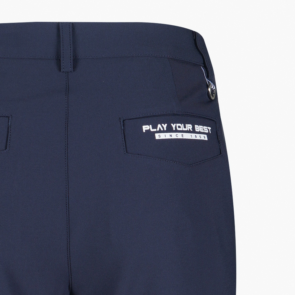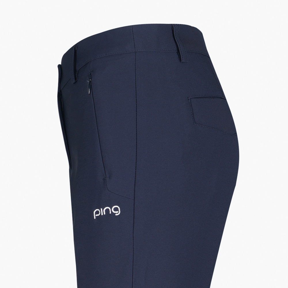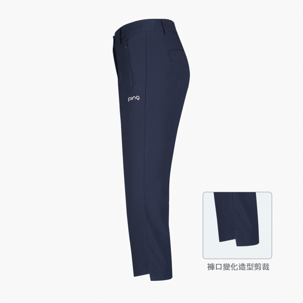 【PING】女款高彈性吸濕排汗隱形拉鍊8分長褲-深藍 / RE23101-58