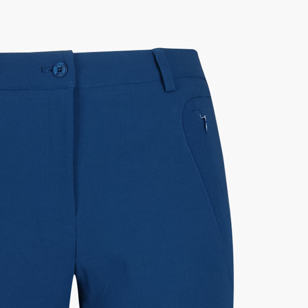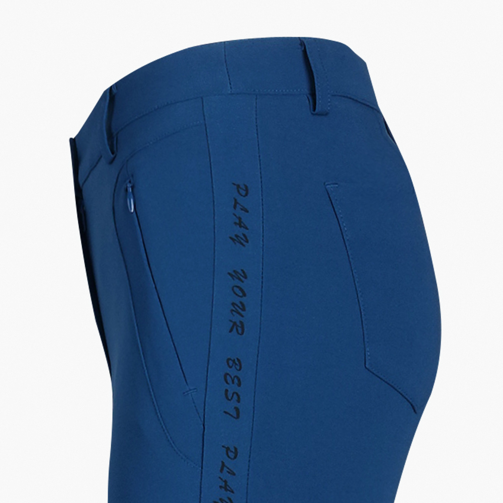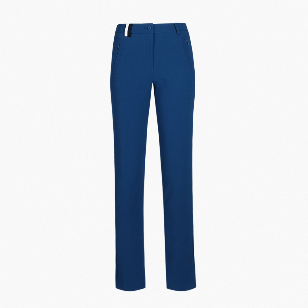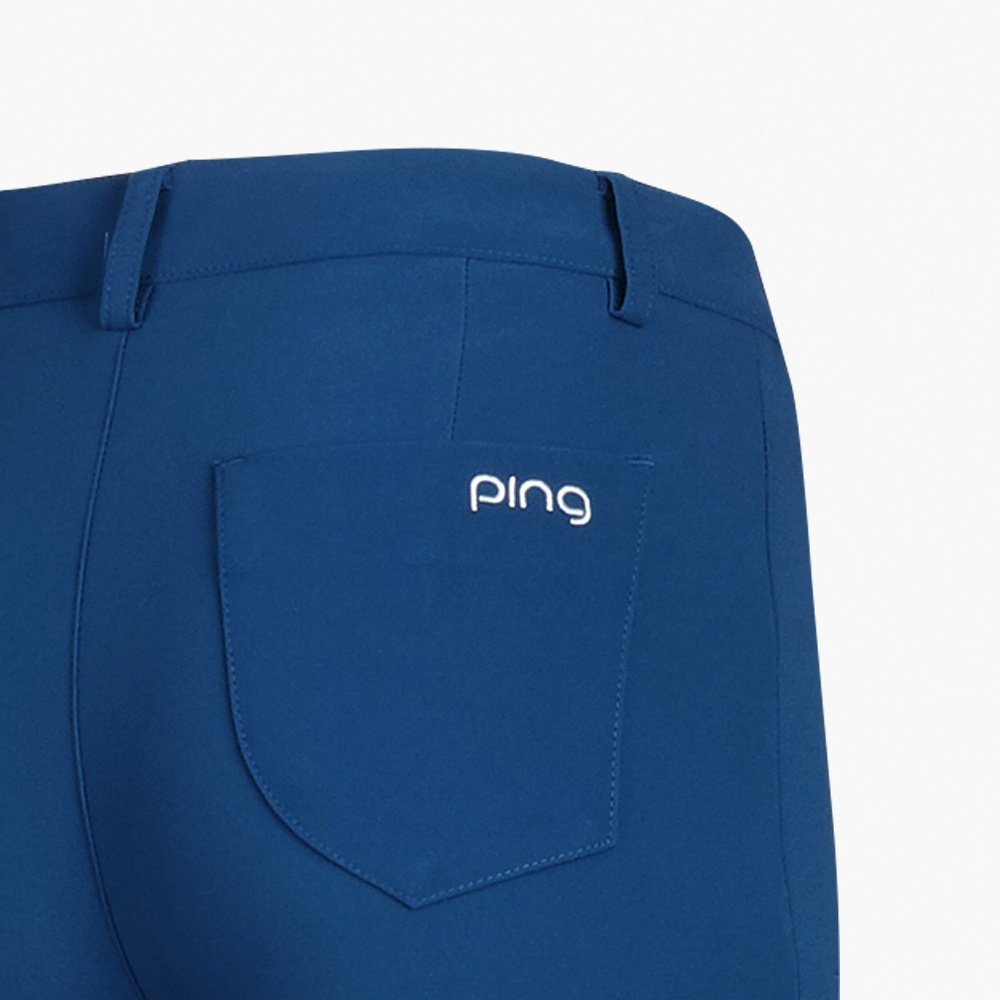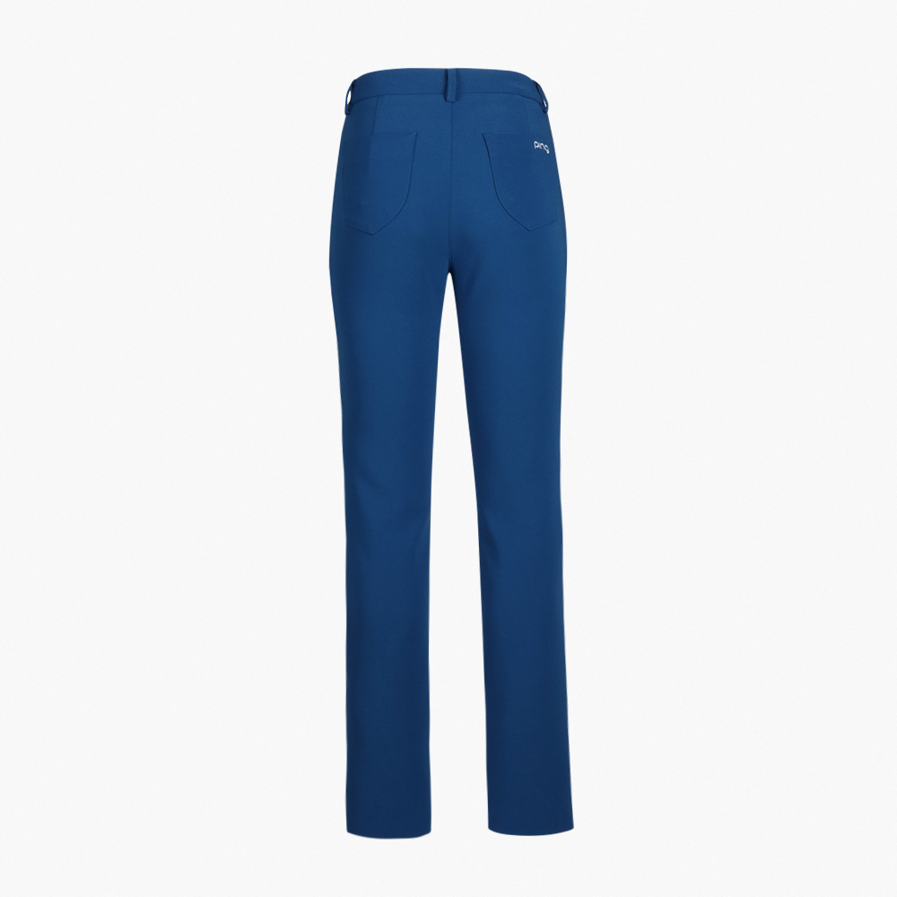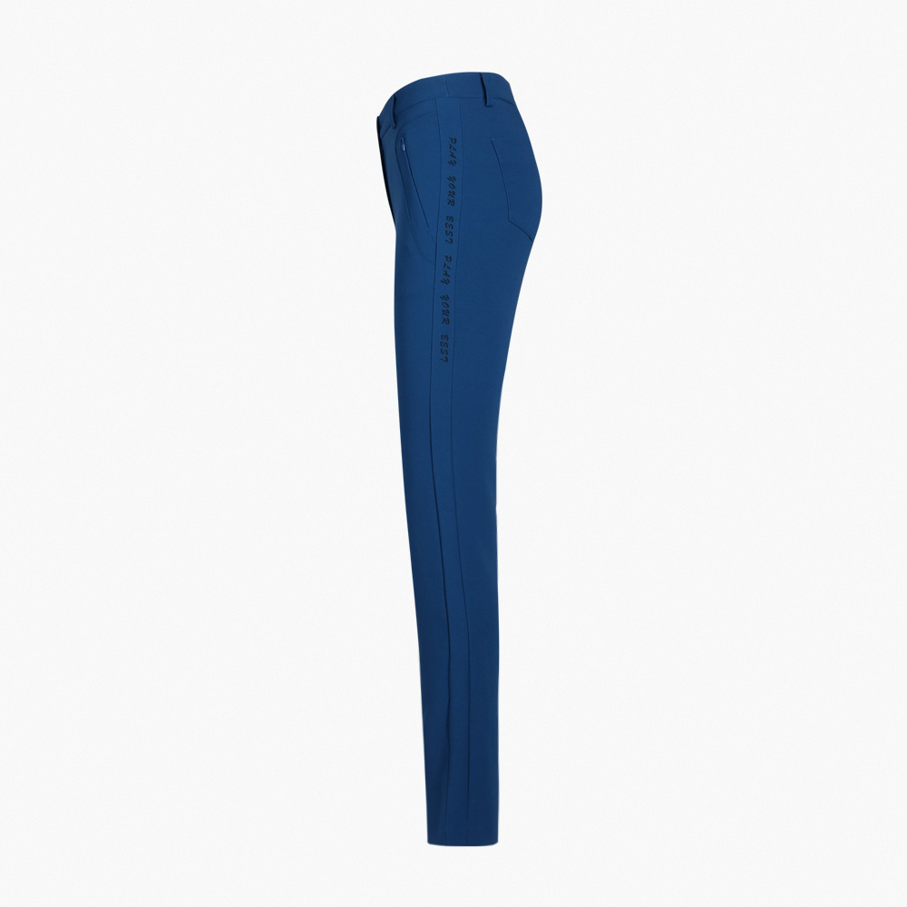 【PING】女款側邊印花剪接高彈性休閒長褲-藍 / RE23206-56