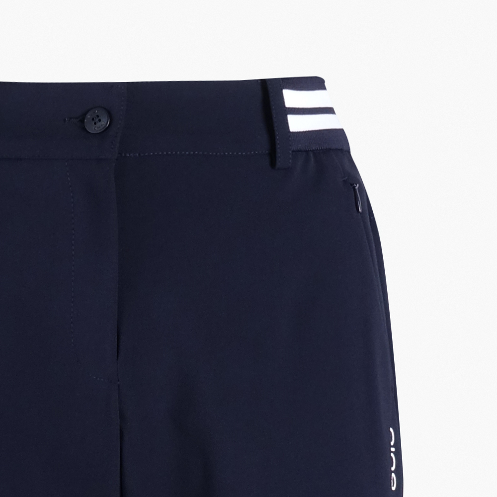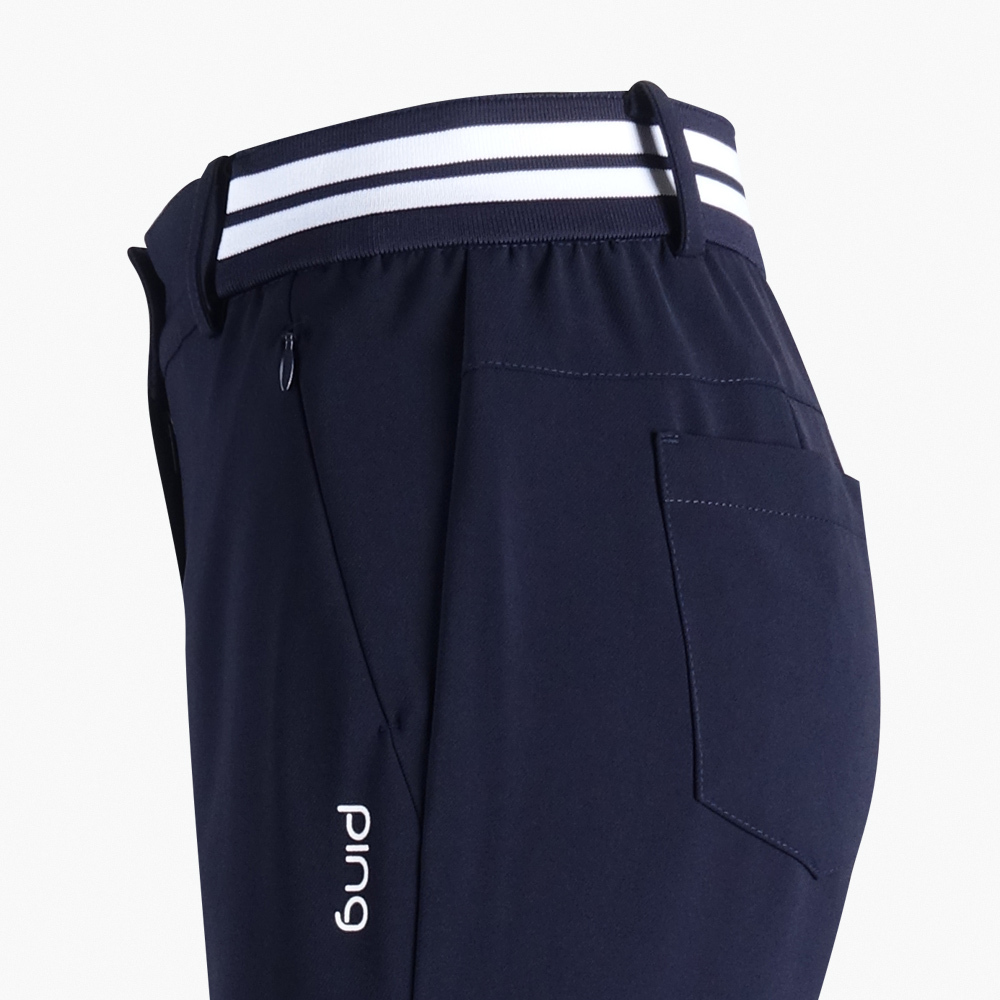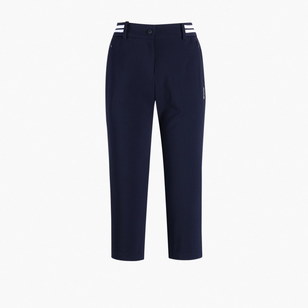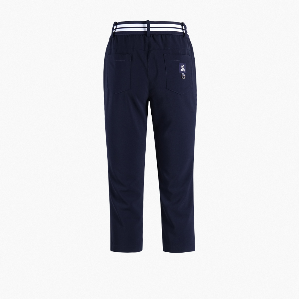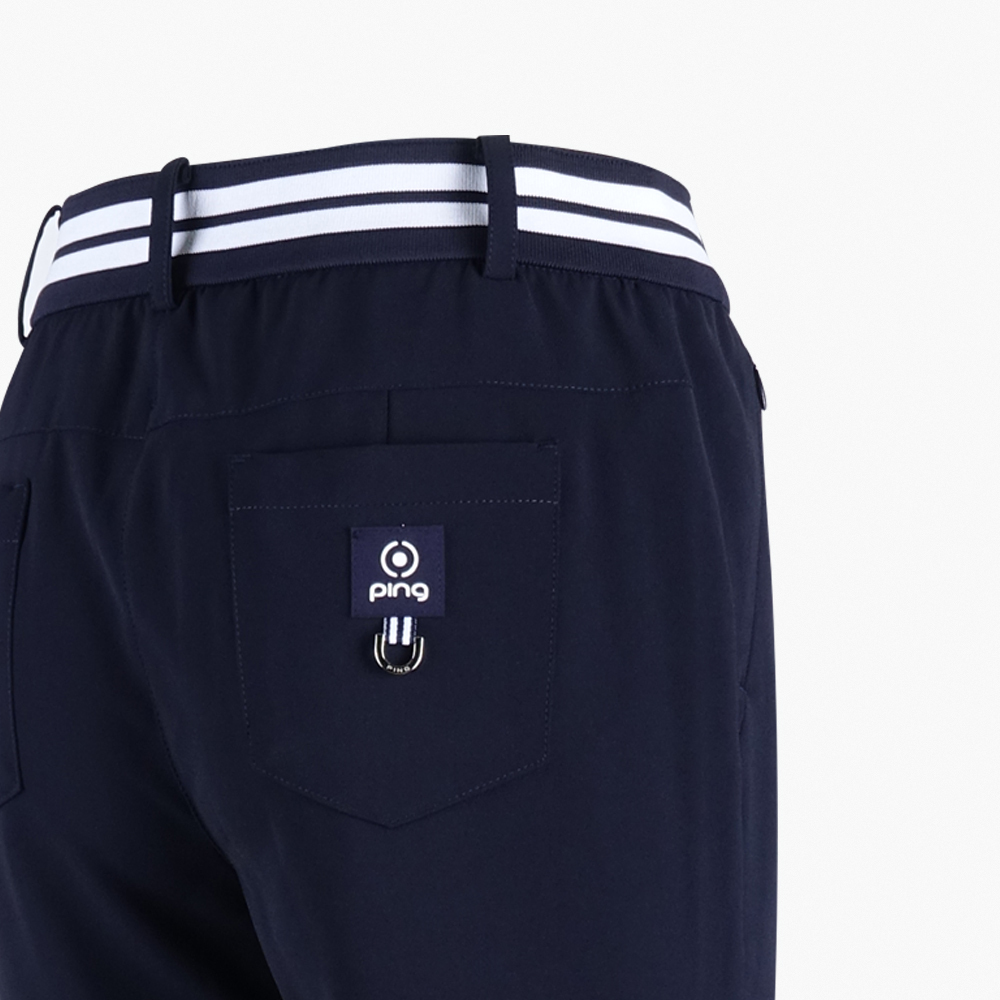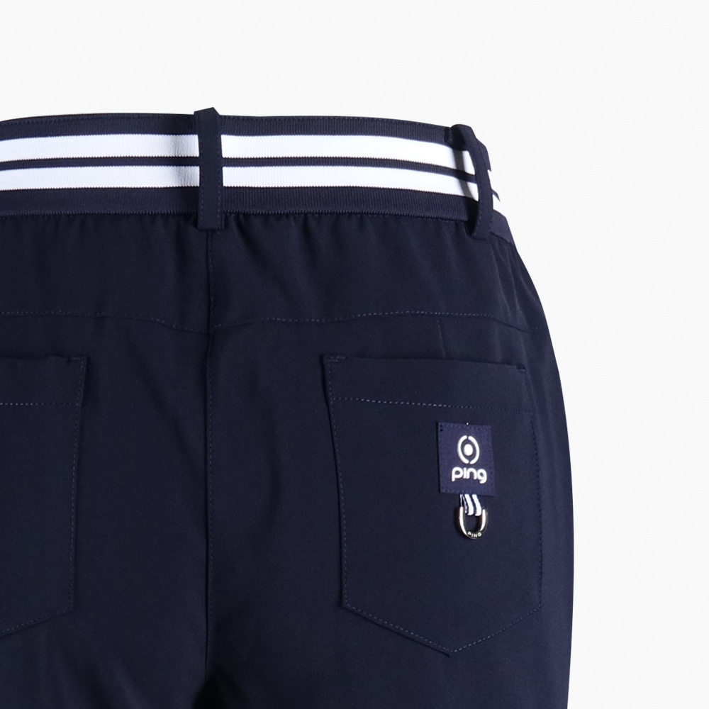 【PING】女款腰間織帶高彈性八分褲-深藍 / RE24103-58