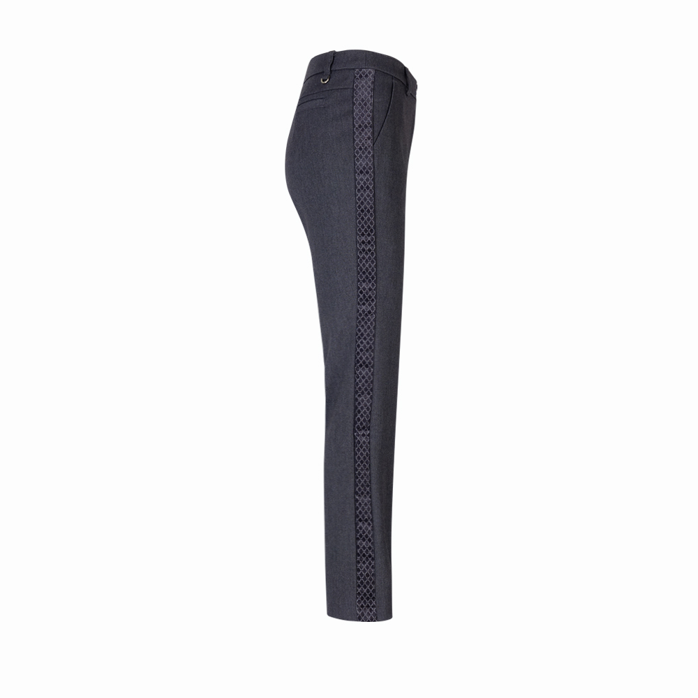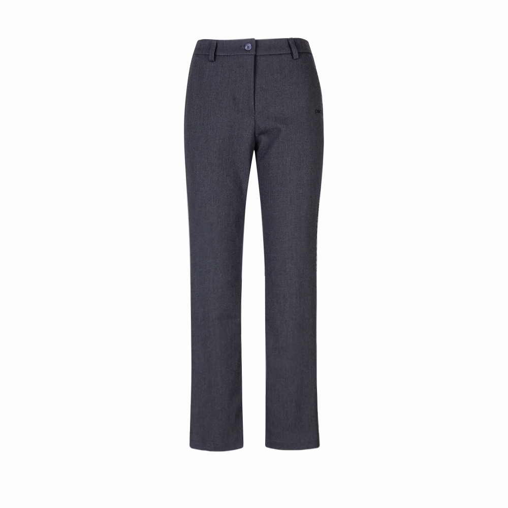 【PING】女款側邊絨布剪接九分喇叭褲-灰 / RE24205-86