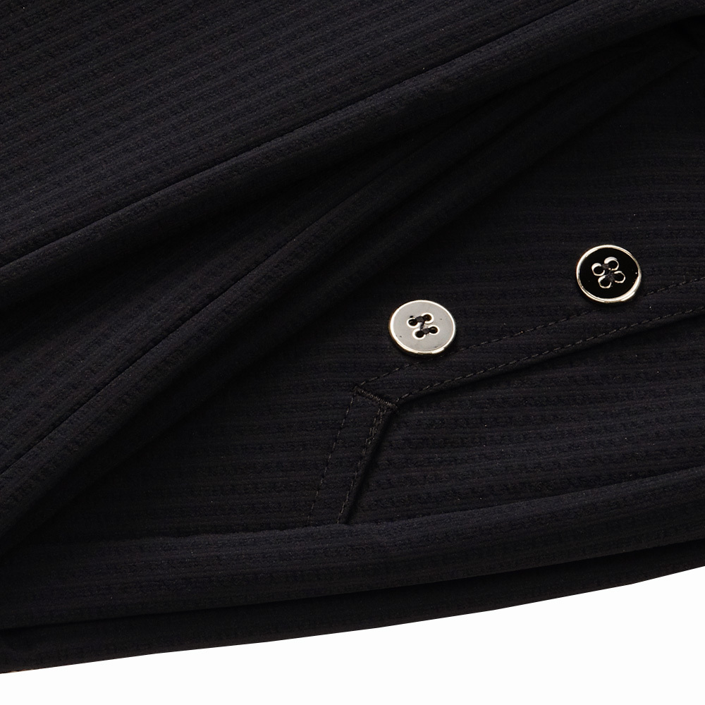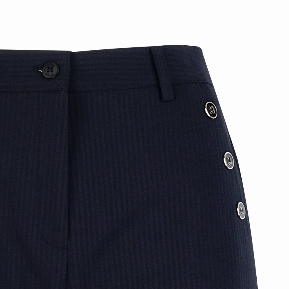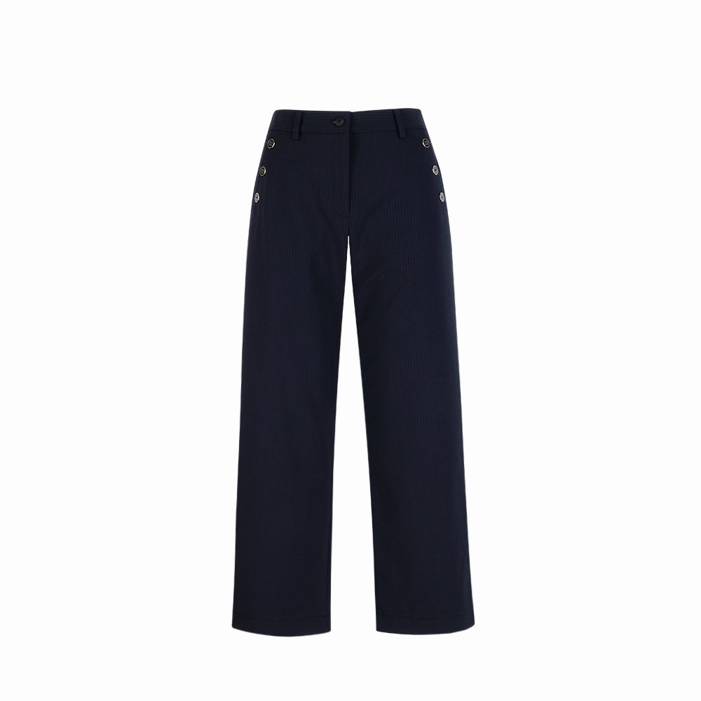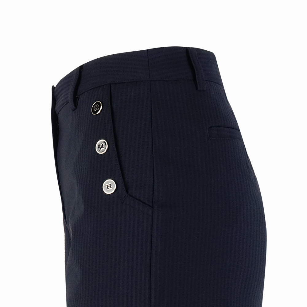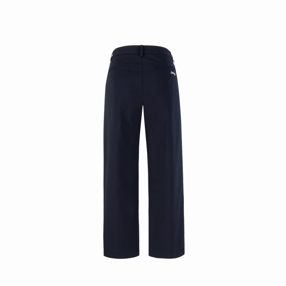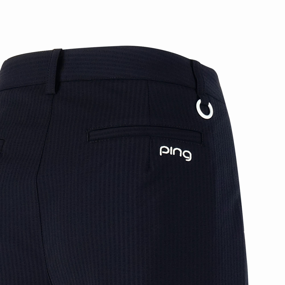 【PING】女款直條紋高彈力八分寬口褲-黑 / RE25105-88