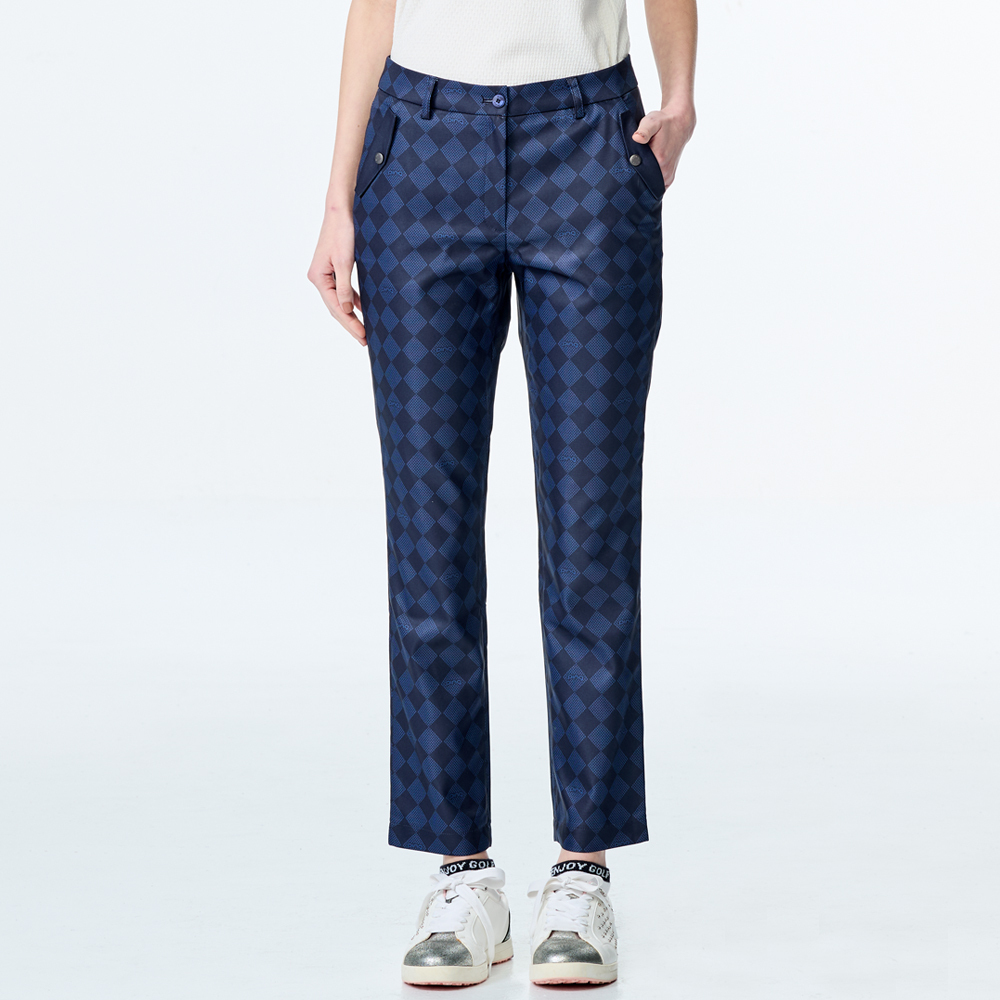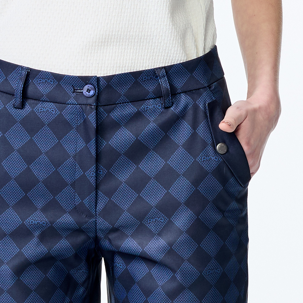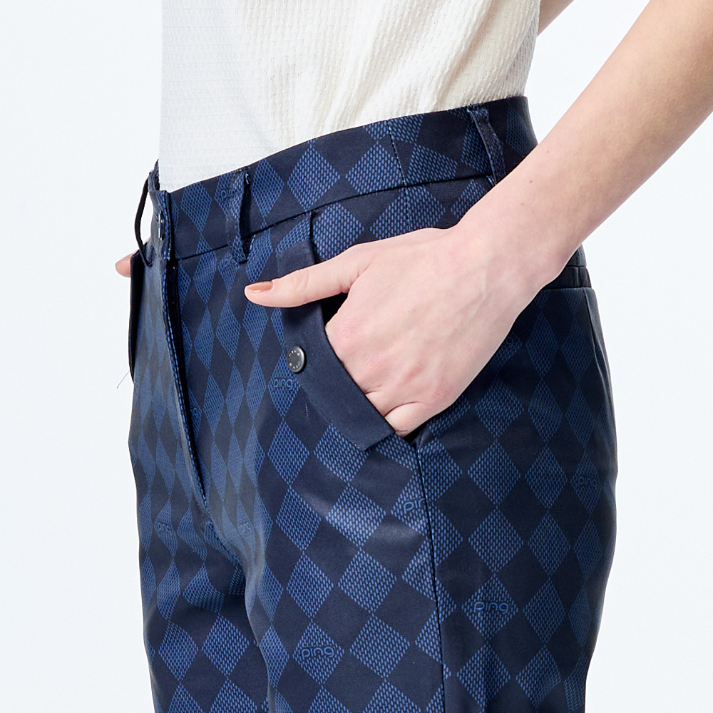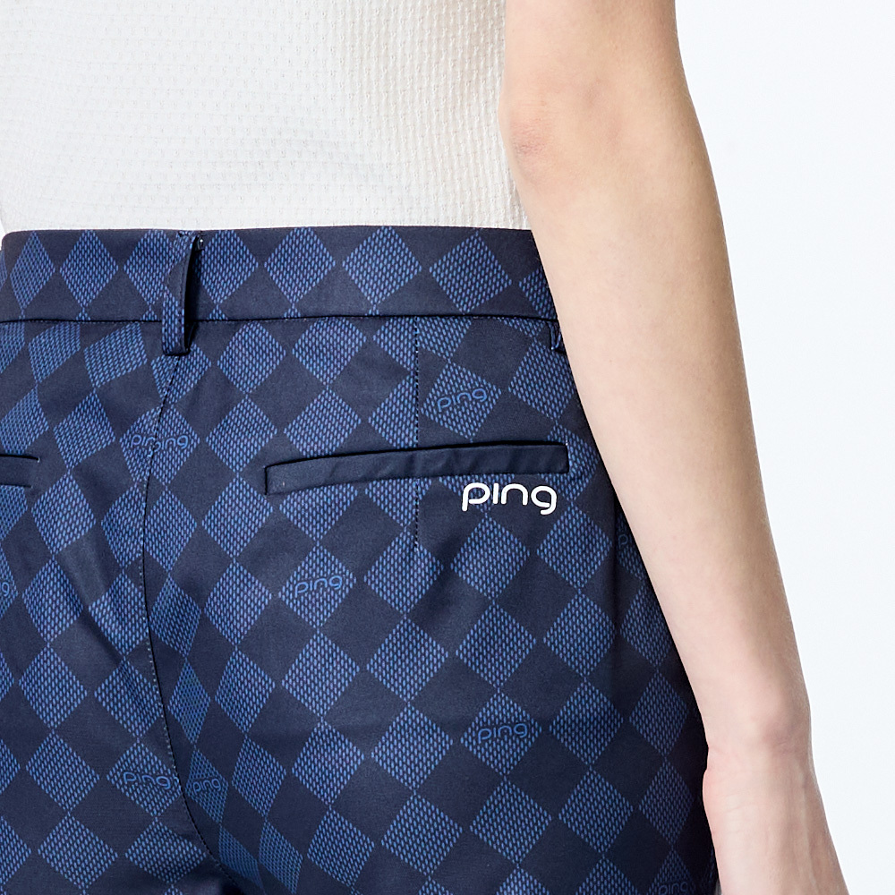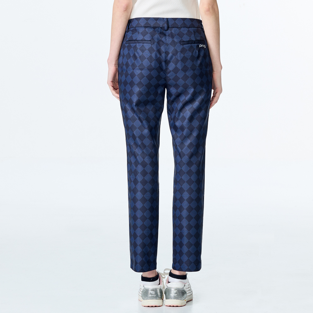 【PING】女款菱格紋吸濕排汗高爾夫長褲-黑 / RE25109-88