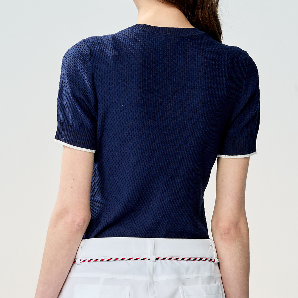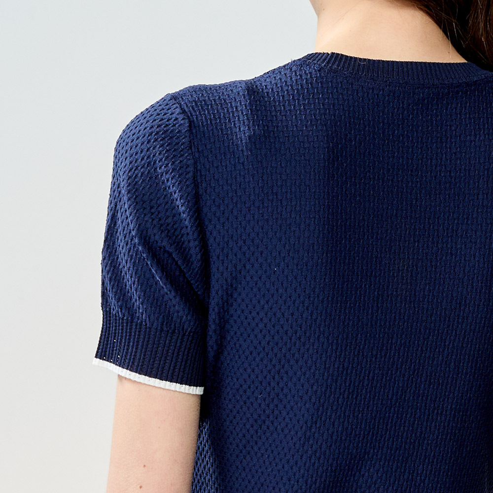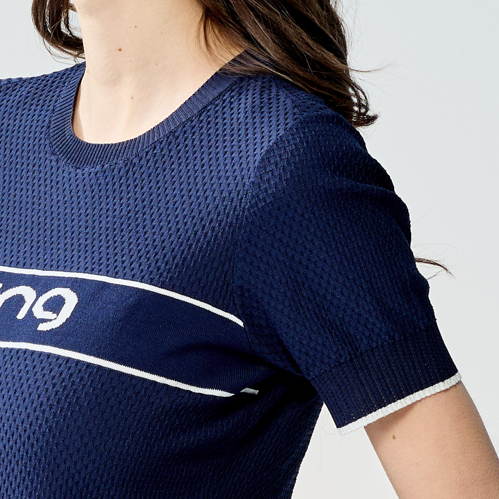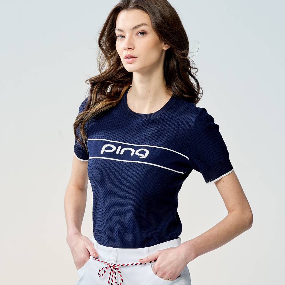 【PING】女款LOGO圓領休閒薄款針織衫-深藍 / RH25121-58