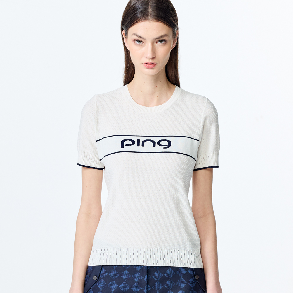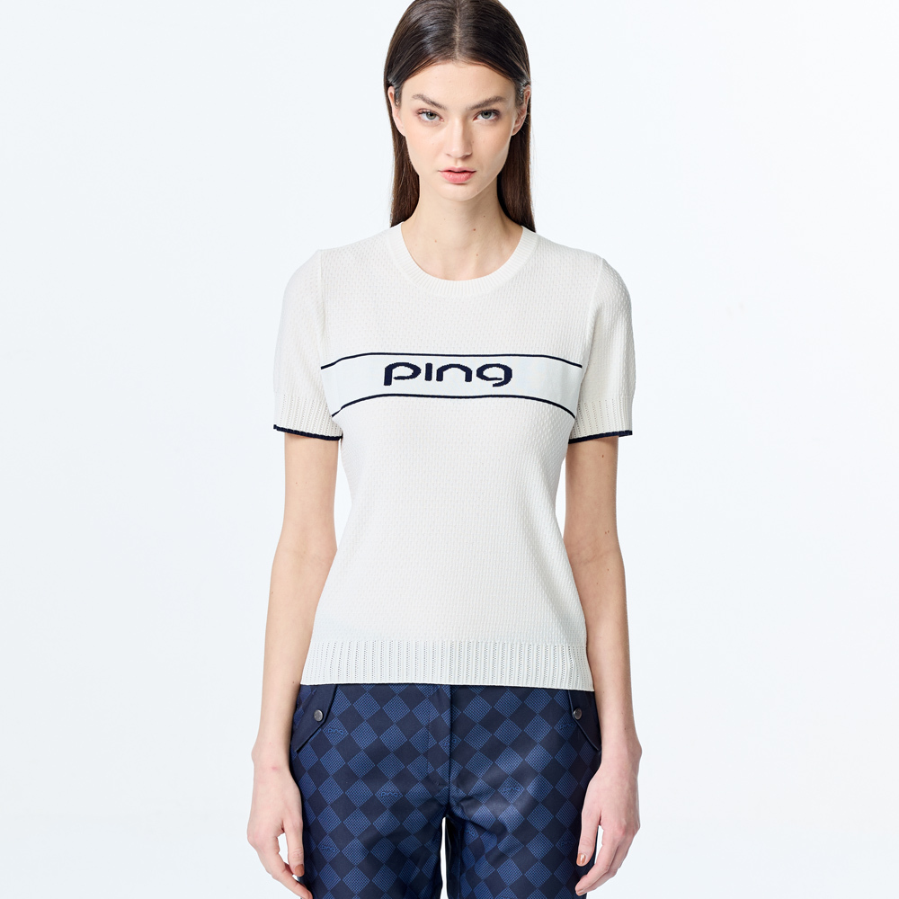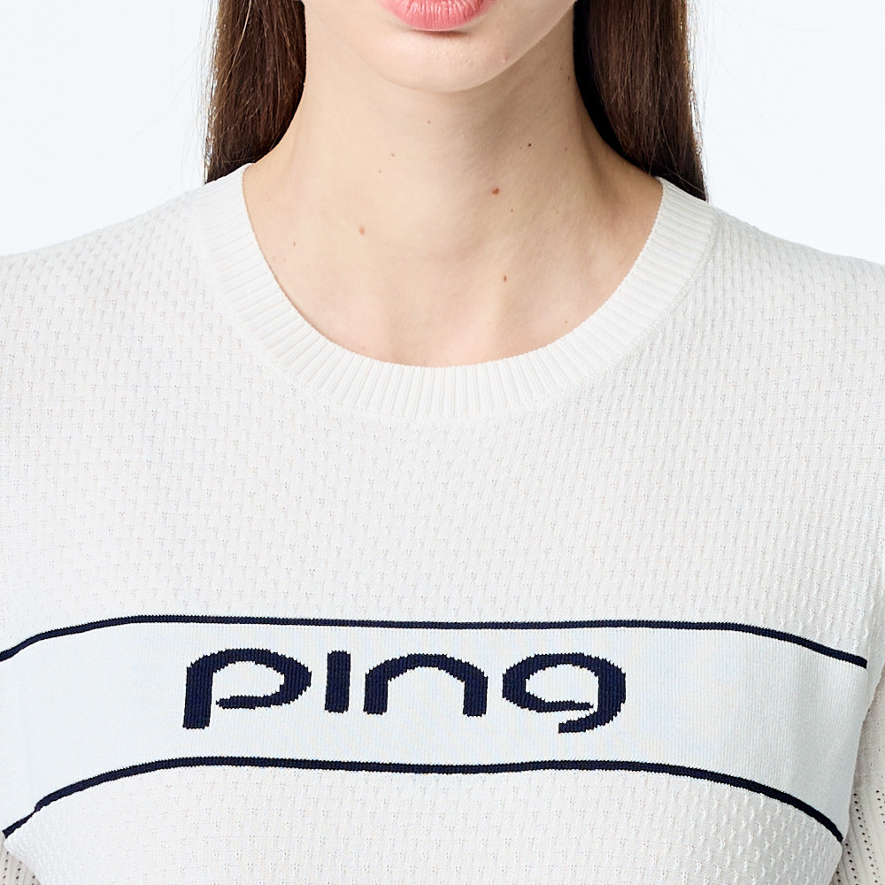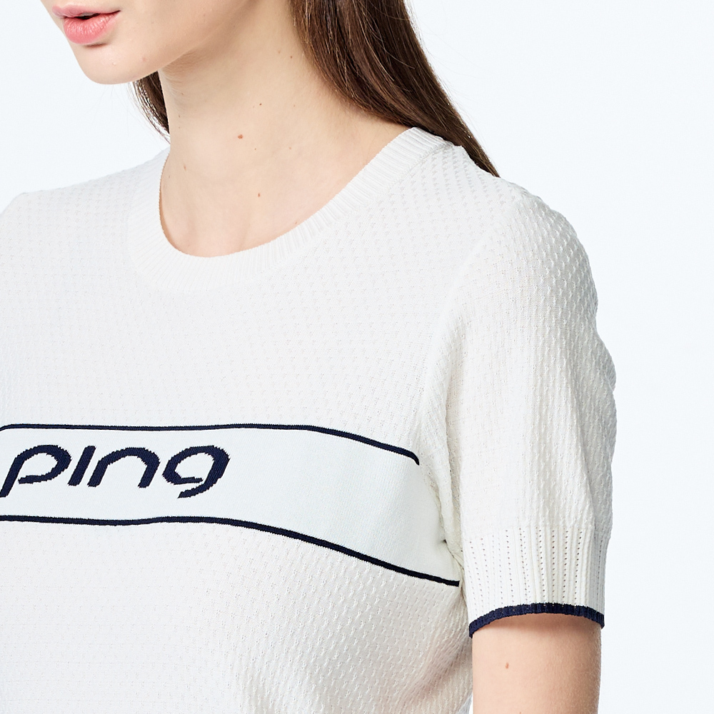 【PING】女款LOGO圓領休閒薄款針織衫-白 / RH25121-87
